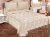 При производстве покрывала серии "GUPURLU KABARTMA" ТМ "Maison D'or" используется 100% хлопок с добавлением шёлковой нити для создания классического жаккардового рисунка на наружной поверхности покрывала и наволочек. Изделие декорировано изящным кружевом по периметру. Хлопковое содержание обеспечивает покрывалу абсолютную экологичность и гипоаллергенность, воздухопроницаемость и гигроскопичность.