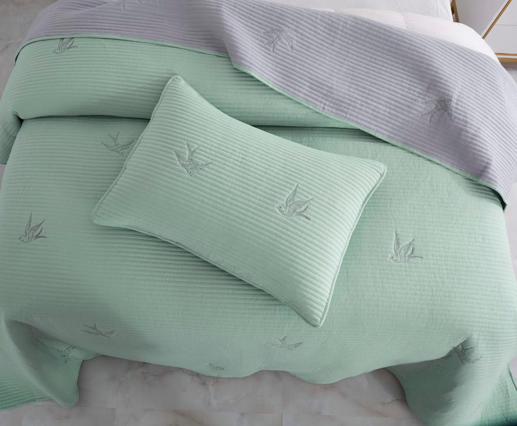 Комплект покрывала "Жаклин" с наволочками выполнен из хлопка и вискозы, нежной на ощупь и практичной в использовании: ткань не линяет при стирке, обладает отличной воздухопроницаемостью, гипоаллергенна.