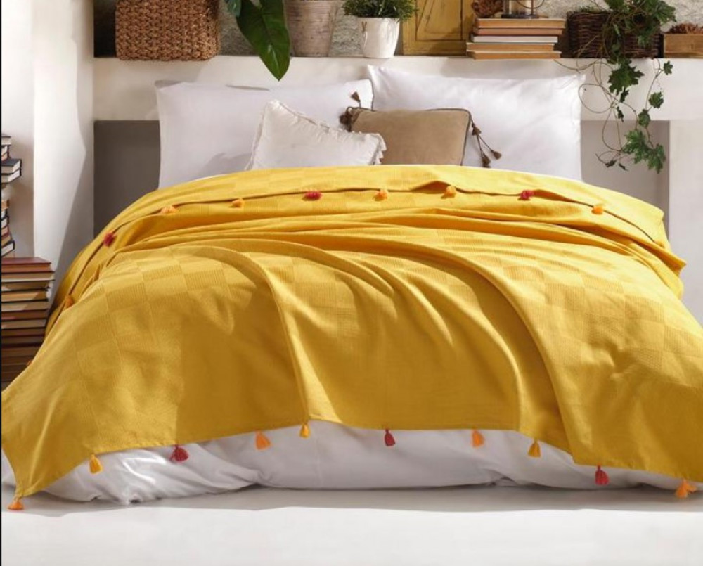 Покрывало вафельное "SAHESER" ZILLER горчичный, 220х220