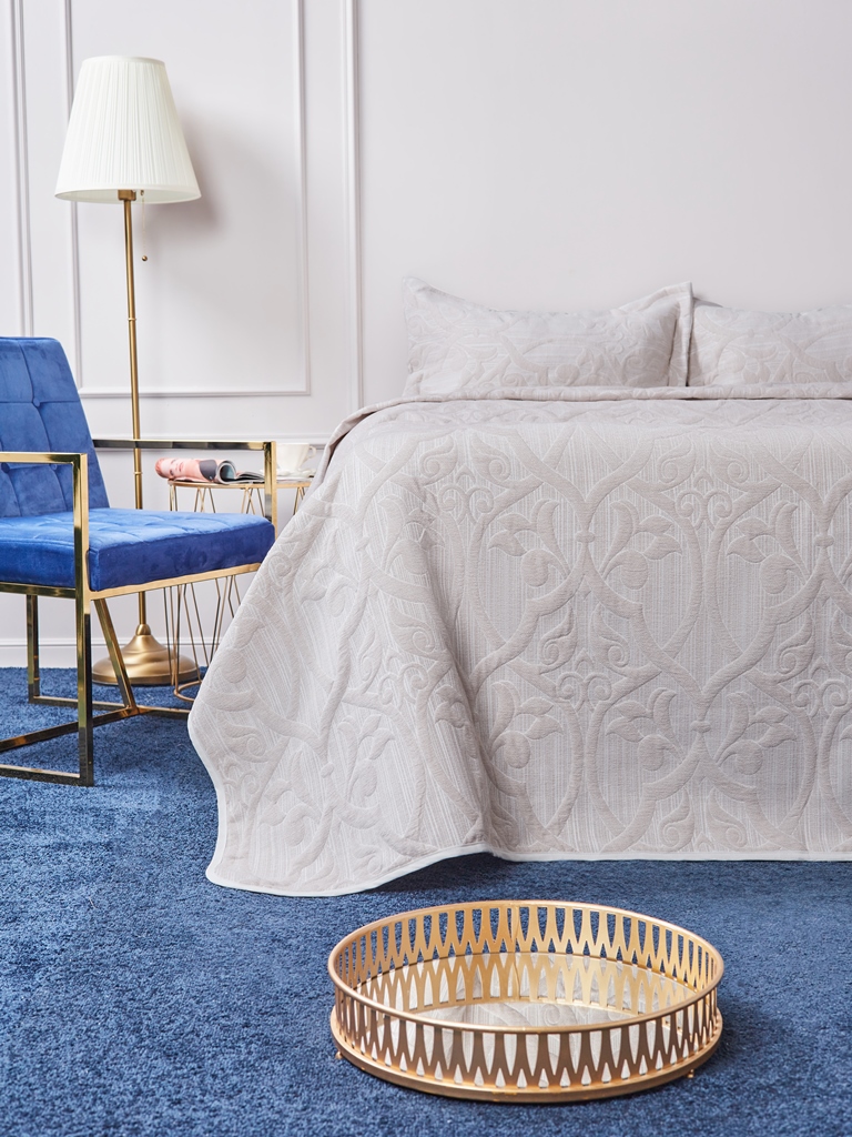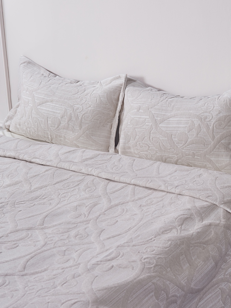 Для производства жаккардовых покрывал с наволочками коллекции "AYCAN" используется натуральный хлопок с полиэстером. Присутствие волокон полиэстера значительно увеличивает прочность и износостойкость покрывала, повышает его грязеустойчивость и несминаемость, существенно продлевает срок службы. При этом сохраняются все положительные характеристики, свойственные хлопковым изделиям: экологичность, воздухопроницаемость, гипоаллергенность, приятные тактильные ощущения.
