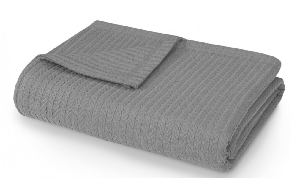 Плед-покрывало хлопковый "КОСА" коса серый, 160х230