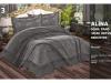 Для производства жаккардовых покрывал с наволочками серии "ALINA" торговой марки «EFOR» (Турция) используется полиэстер с добавлением шенилловых волокон. Жаккардовое плетение обеспечивает покрывалам не только благородный внешний вид, но и повышает их плотность, износостойкость и долговечность. Покрывала декорированы широким кружевом по периметру изделия.