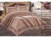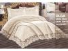 Для производства жаккардовых покрывал с наволочками серии "OLGA" торговой марки «EFOR» (Турция) используется полиэстер с добавлением шенилловых волокон. Жаккардовое плетение обеспечивает покрывалам не только благородный внешний вид, но и повышает их плотность, износостойкость и долговечность. Покрывала декорированы широким кружевом по периметру изделия.