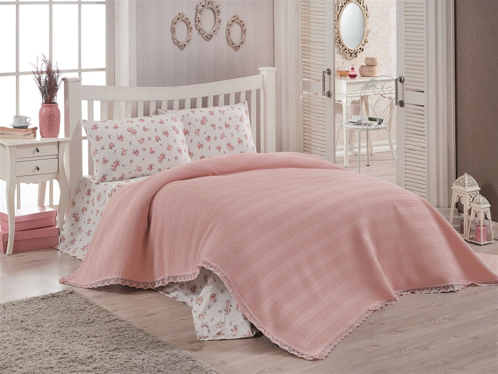Покрывало вафельное с гипюром "DO&CO" 220x240 PETEK, розовый