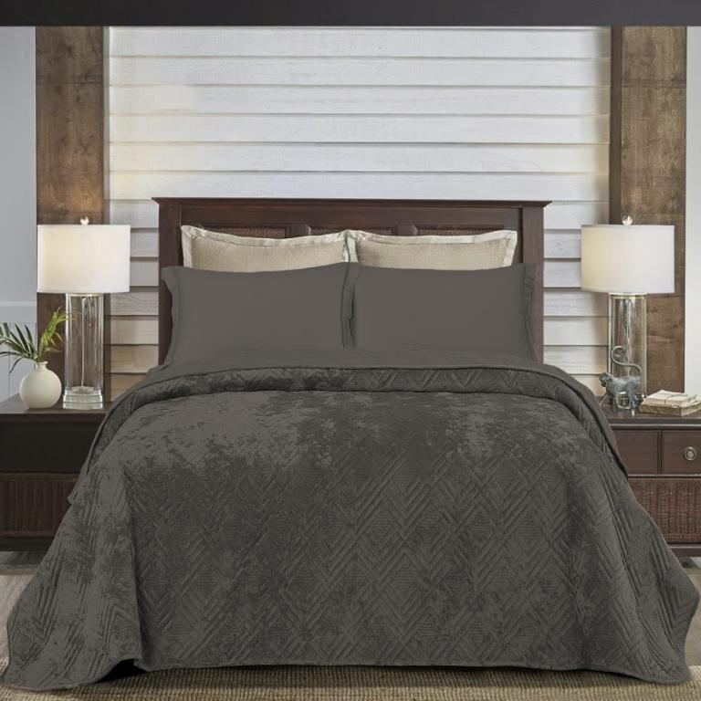 Покрывало из вареного бархата "KARTEKS" 01, 240х260 (50х70-2 шт), серый