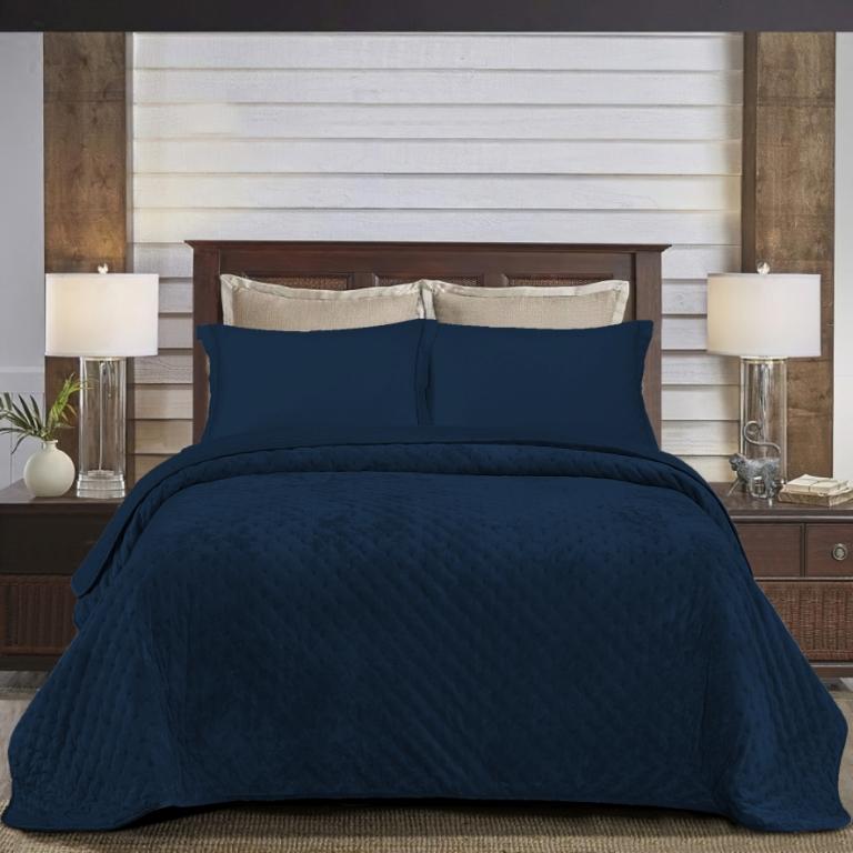 Покрывало из вареного бархата "KARTEKS" 02, 240х260 (50х70-2 шт), синий