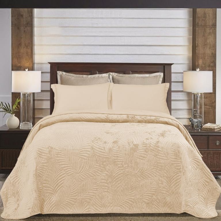 Покрывало из вареного бархата "KARTEKS" 04, 240х260 (50х70-2 шт), кремовый
