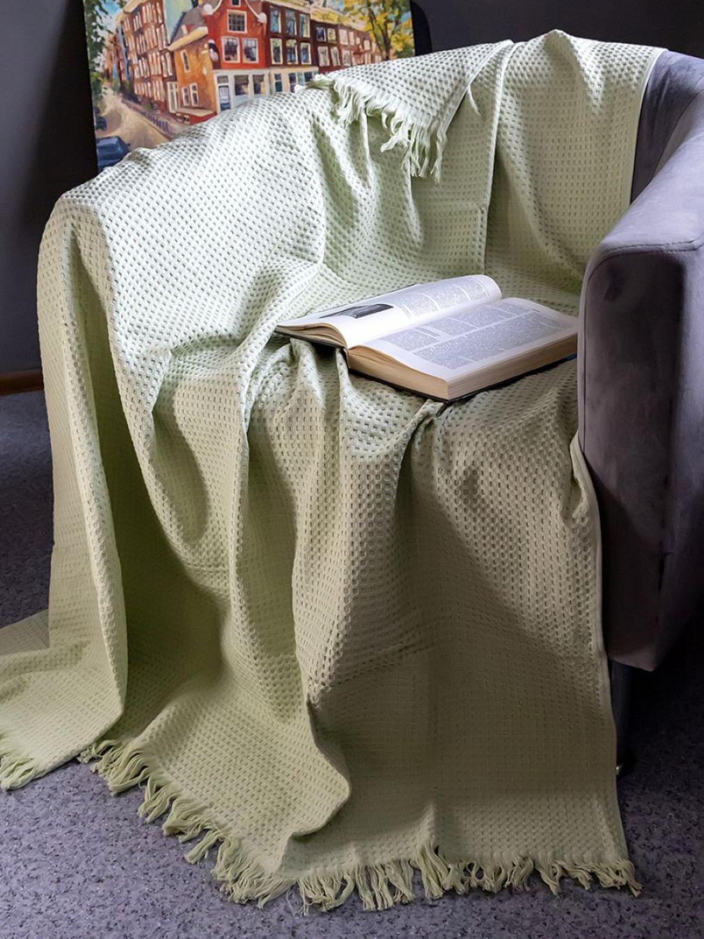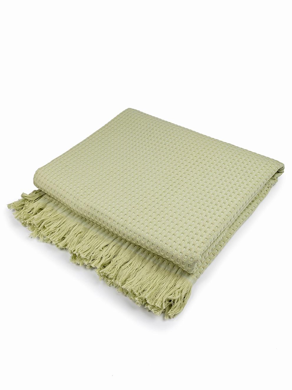 Покрывало вафельное с бахромой Valtery 150х200, светло-зеленый