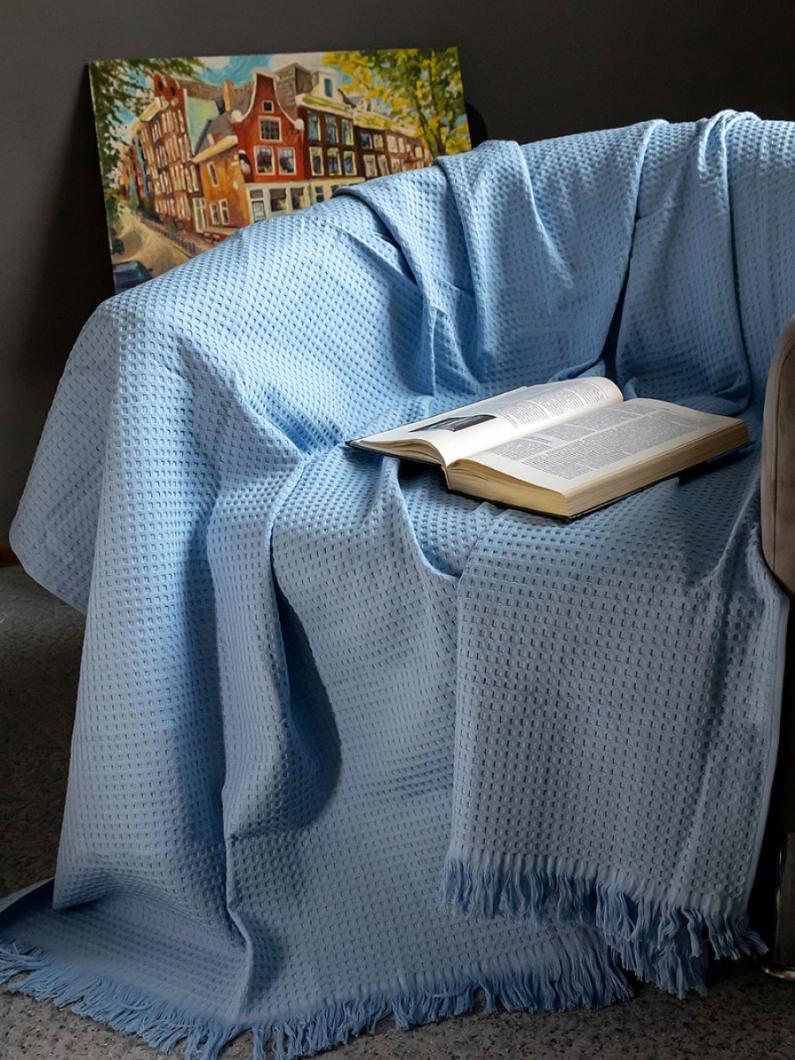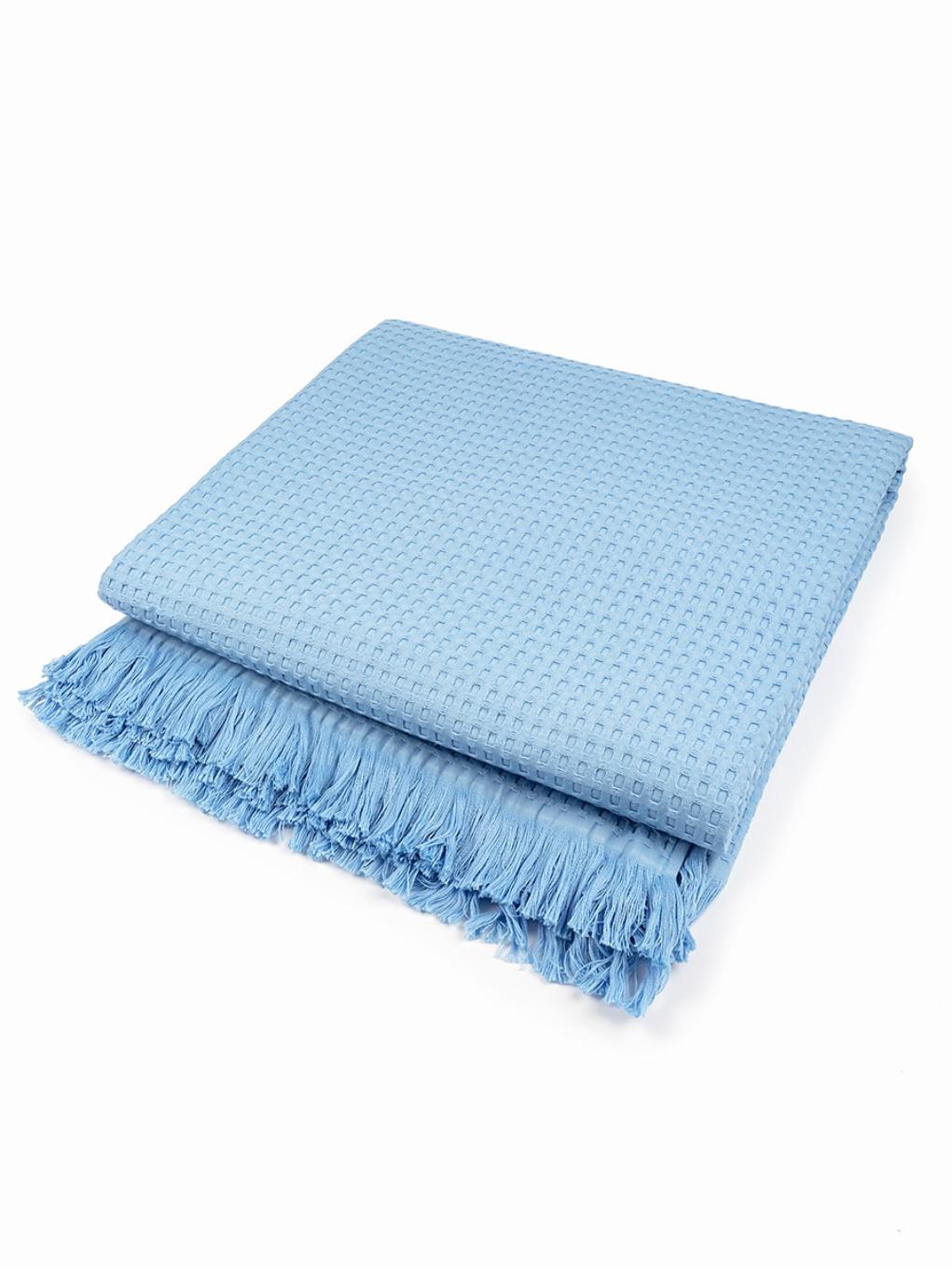 Покрывало вафельное с бахромой Valtery 200х220, голубой