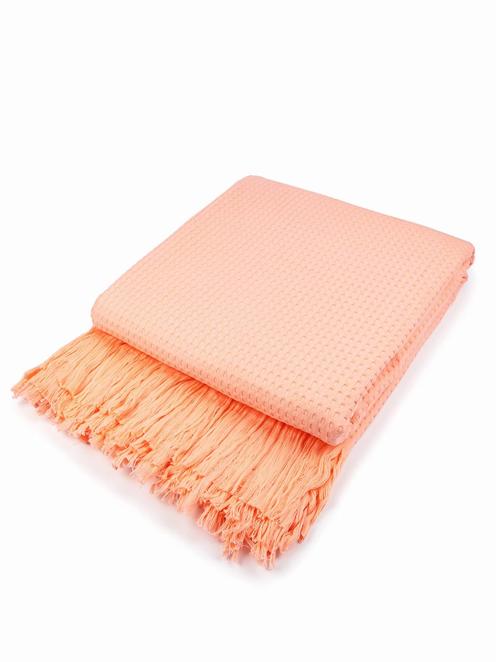 Покрывало вафельное с бахромой Valtery 200х220, пудровый