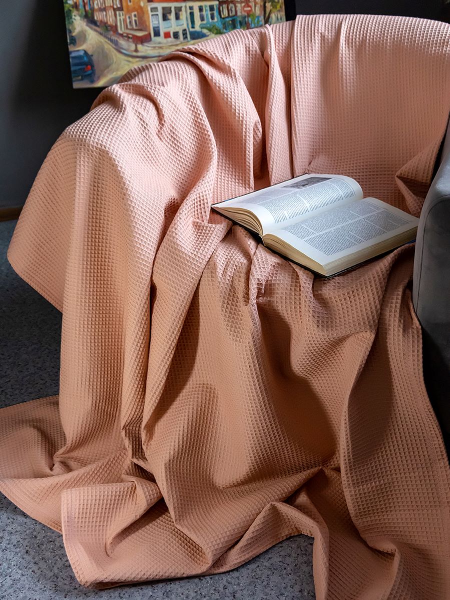 При производстве вафельного покрывала ТМ "Valtery" применяется 100% хлопок, что обеспечивает изделию абсолютную экологичность, гипоаллергенность, высокий уровень воздухопроницаемости и гигроскопичности. Покрывало выполнено в однотонном формате и в летний период может использоваться в качестве лёгкого одеяла.