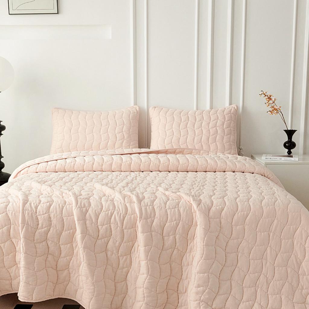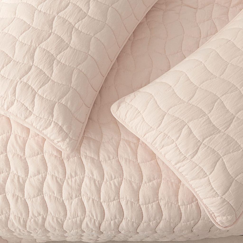 Комплект стёганого покрывала "Минелла" с наволочками с "жатой" структурой ткани выполнен из хлопка и вискозы, нежной на ощупь и практичной в использовании: ткань не линяет при стирке, обладает отличной воздухопроницаемостью, гипоаллергенна.