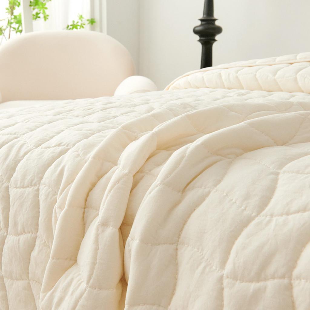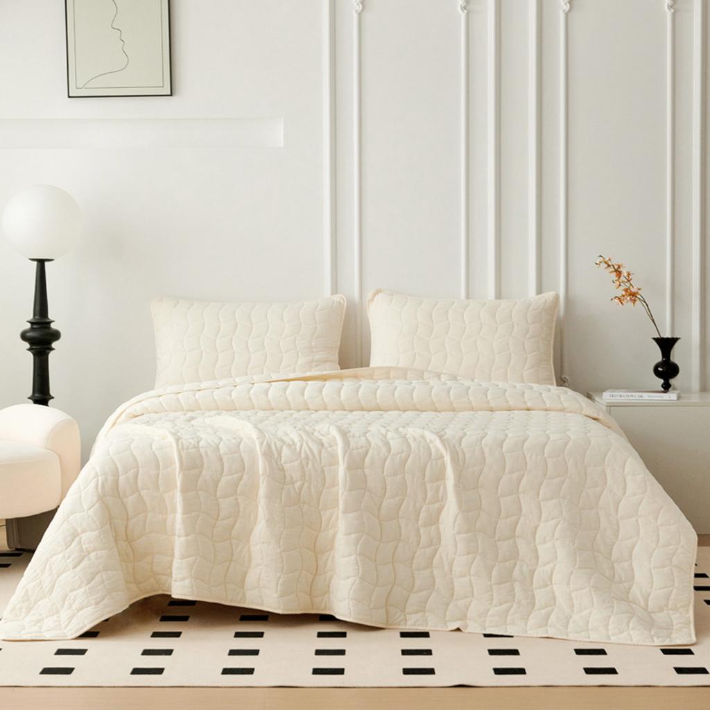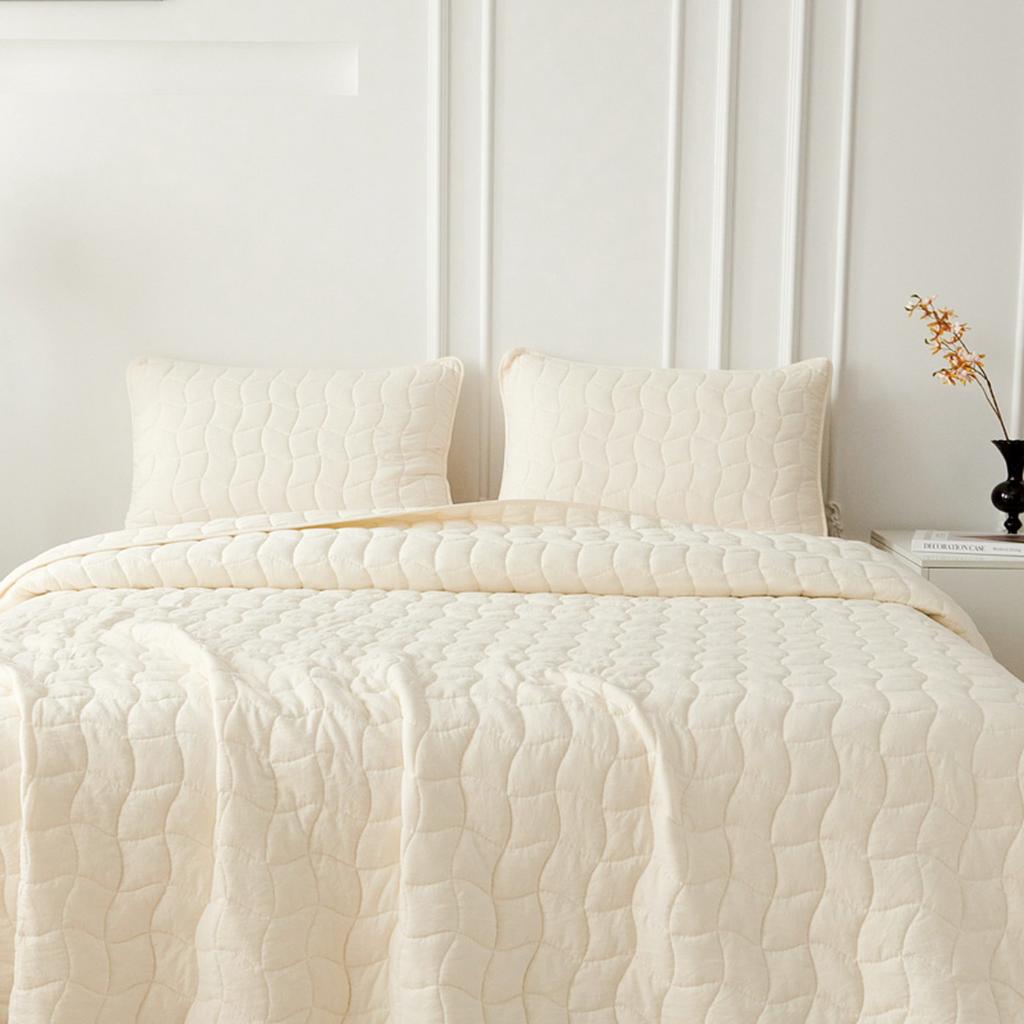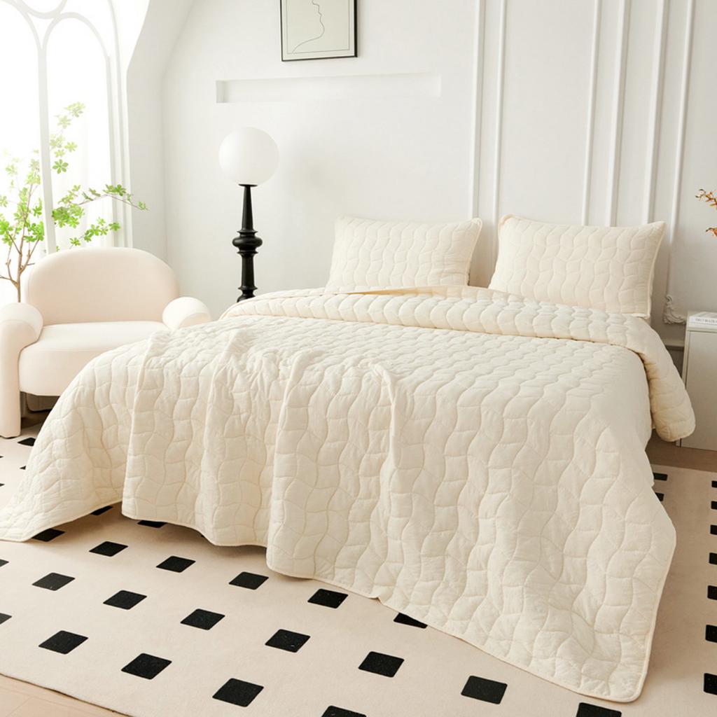 Комплект стёганого покрывала "Минелла" с наволочками с "жатой" структурой ткани выполнен из хлопка и вискозы, нежной на ощупь и практичной в использовании: ткань не линяет при стирке, обладает отличной воздухопроницаемостью, гипоаллергенна.
