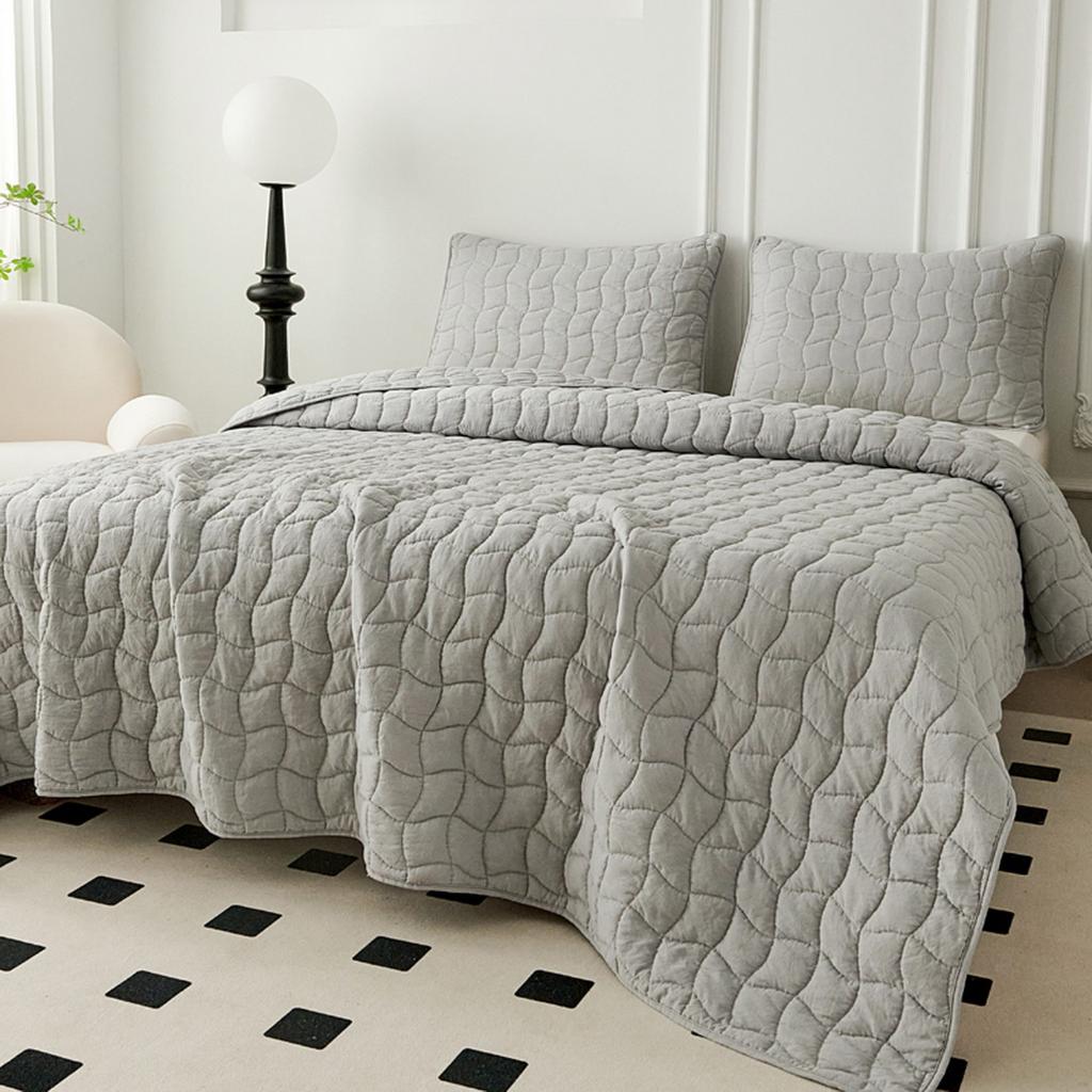 Комплект стёганого покрывала "Минелла" с наволочками с "жатой" структурой ткани выполнен из хлопка и вискозы, нежной на ощупь и практичной в использовании: ткань не линяет при стирке, обладает отличной воздухопроницаемостью, гипоаллергенна.