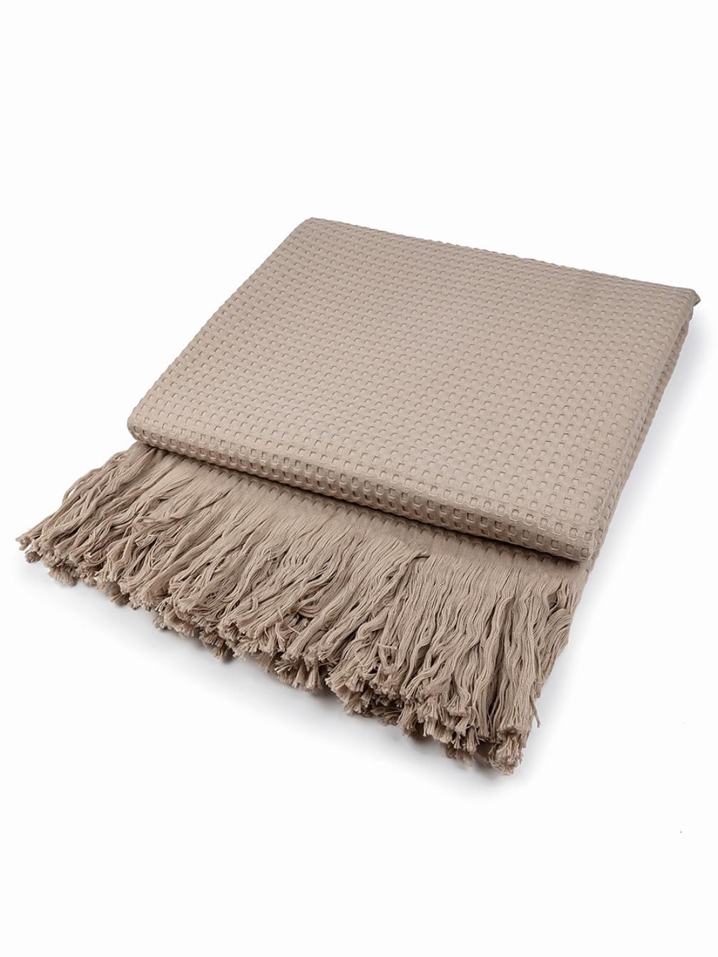 Покрывало вафельное с бахромой Valtery 200х220, коричнево-серый