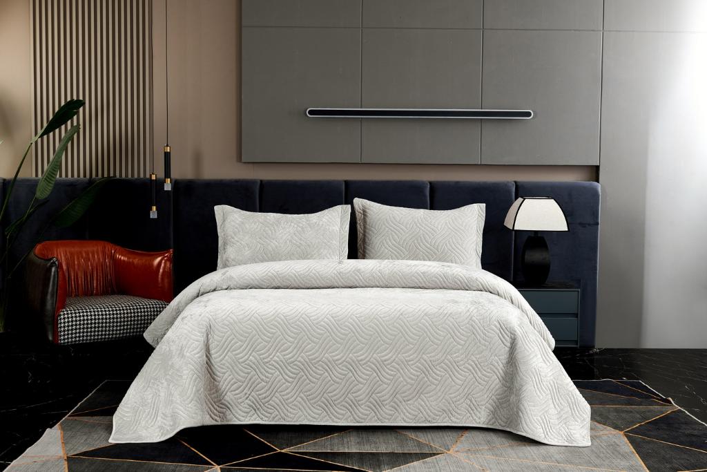 Комплект бархатного покрывала "Деварта" с наволочками выполнен из вискозы, нежной на ощупь и практичной в использовании: ткань не линяет при стирке, обладает отличной воздухопроницаемостью, гипоаллергенна.
