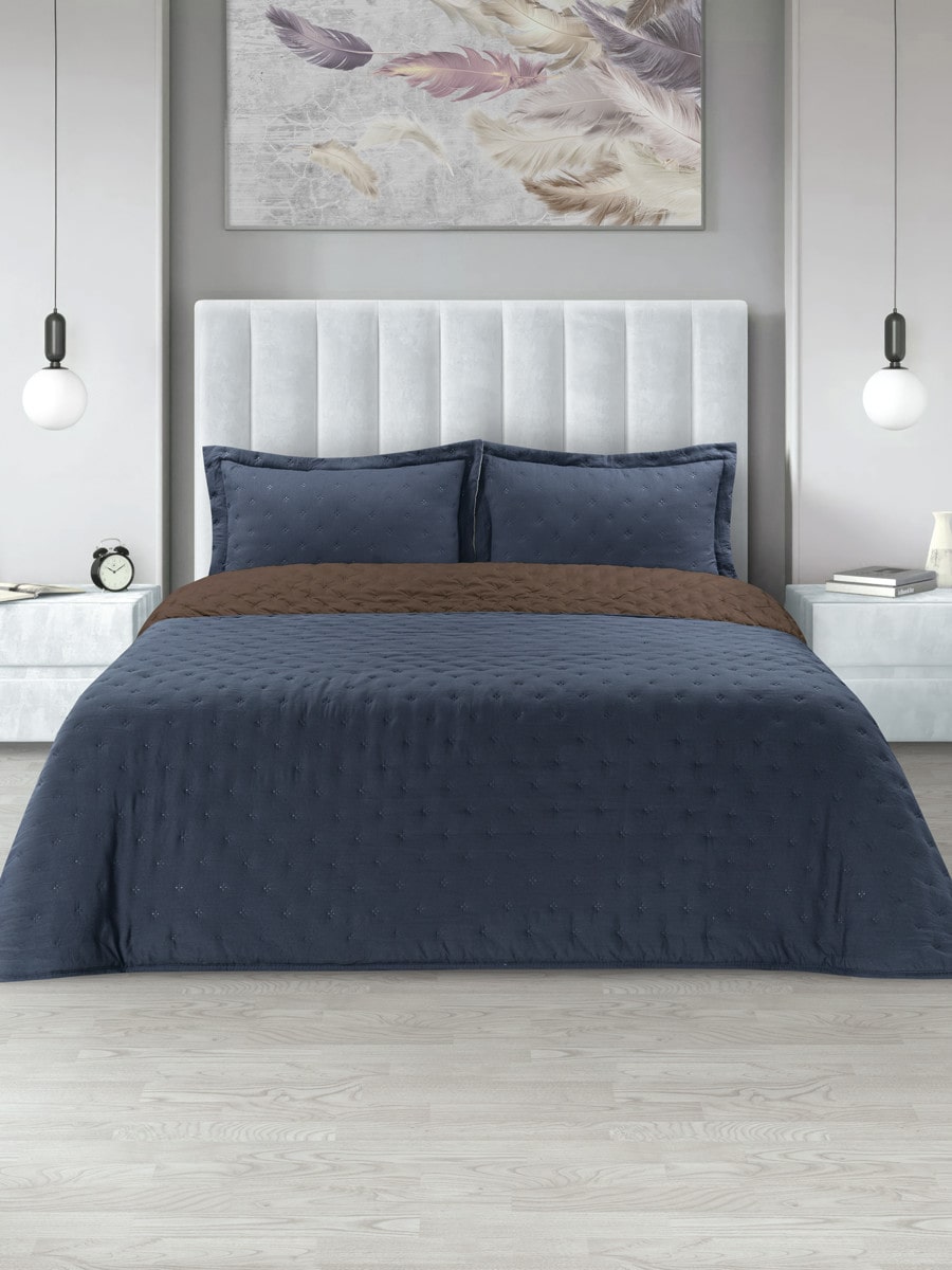 Покрывало PMO-56 синий-коричневый, Евро (230х250) 2 наволочки (50х70)