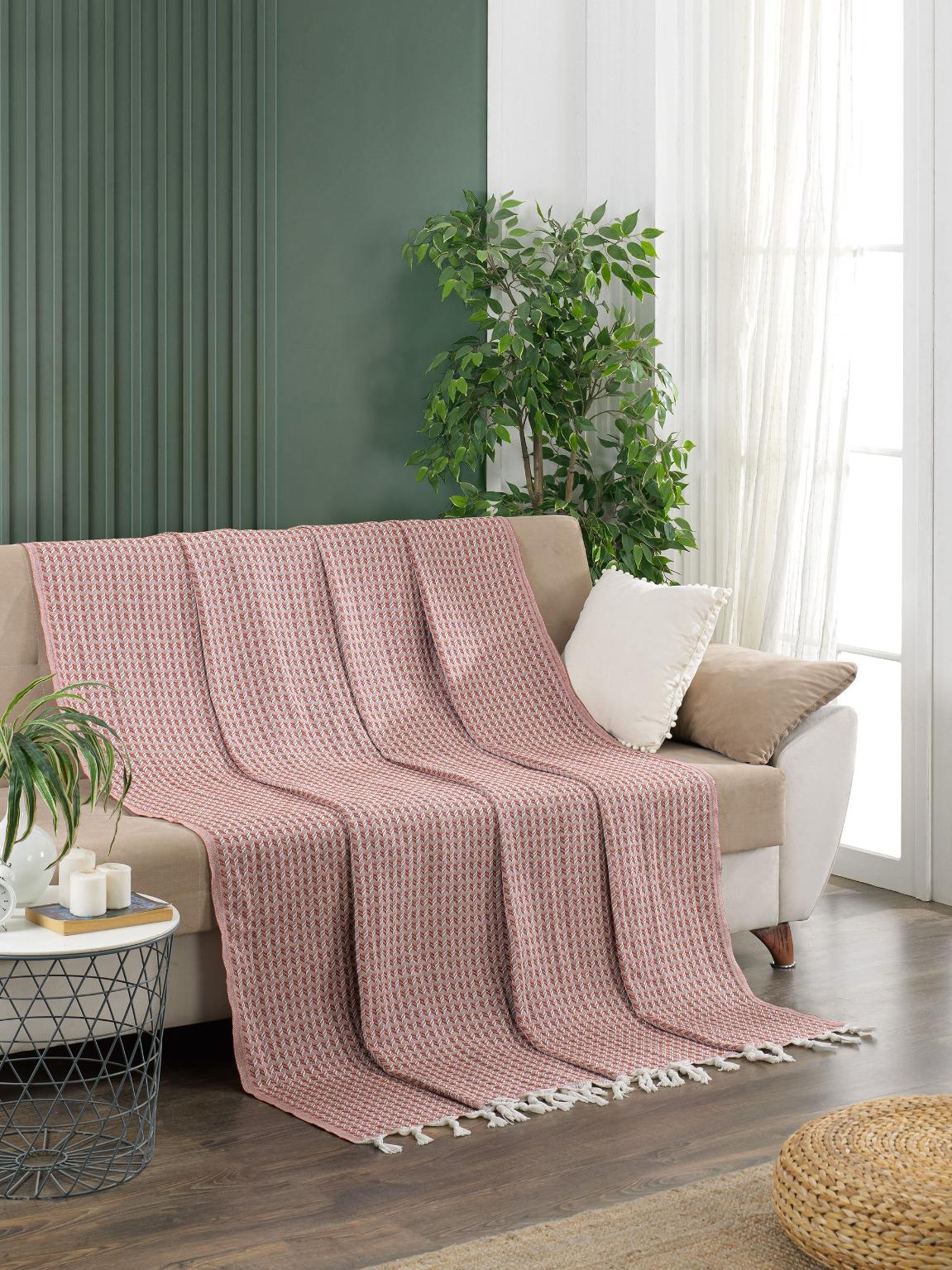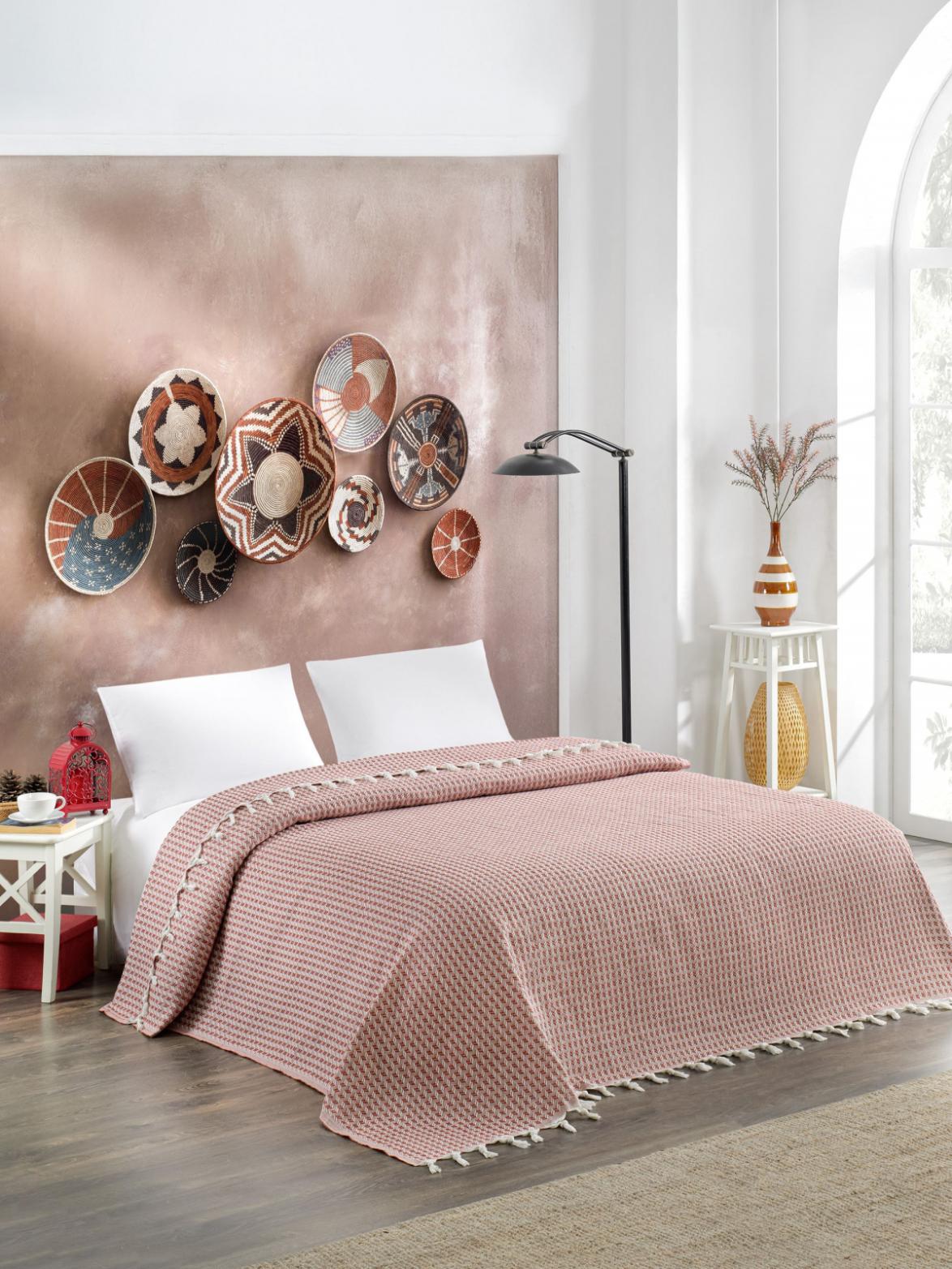 Покрывало вафельное с бахромой "METEOR" DEVONE (терракотовый), 200х230