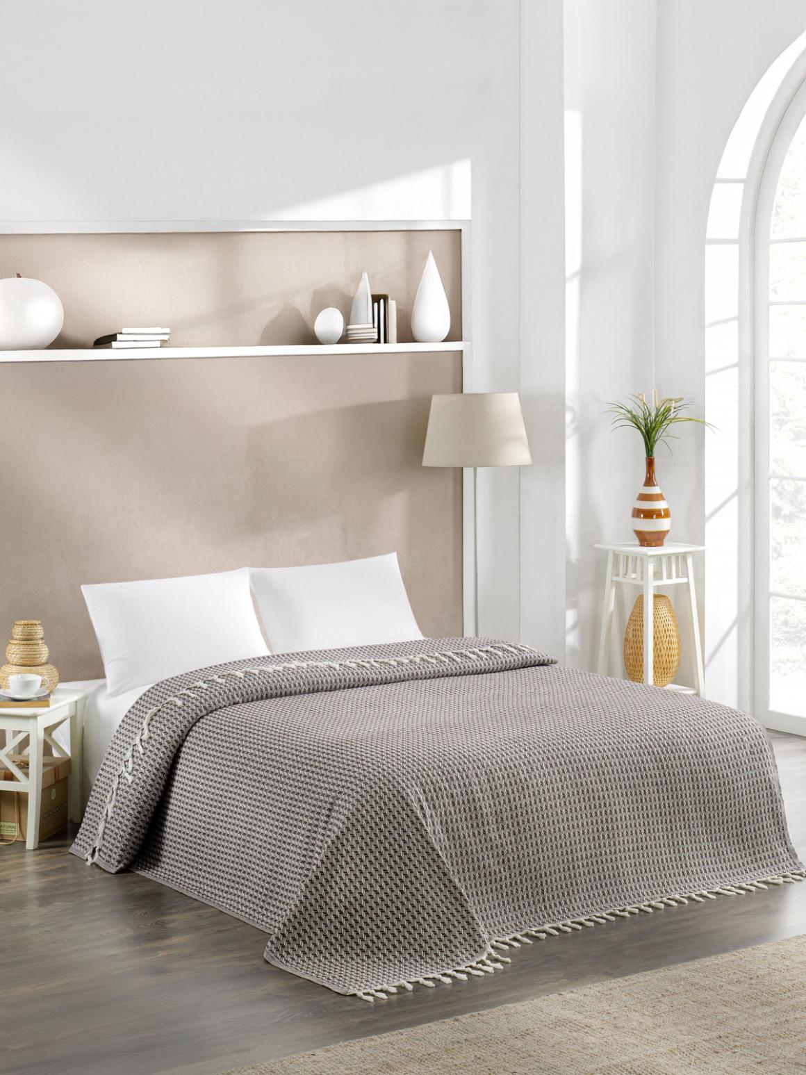 Покрывало вафельное с бахромой "METEOR" DEVONE (коричневый), 200х230