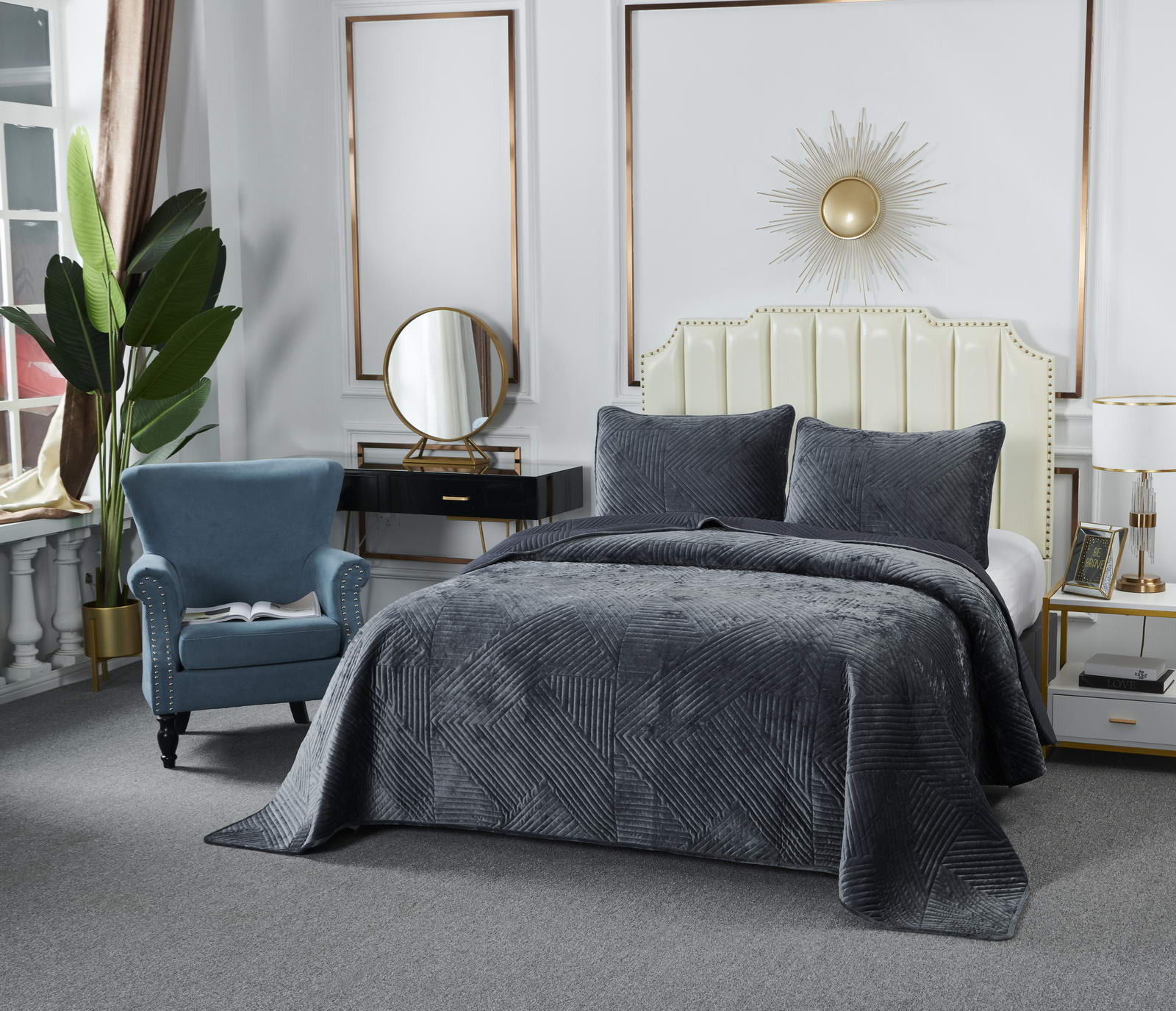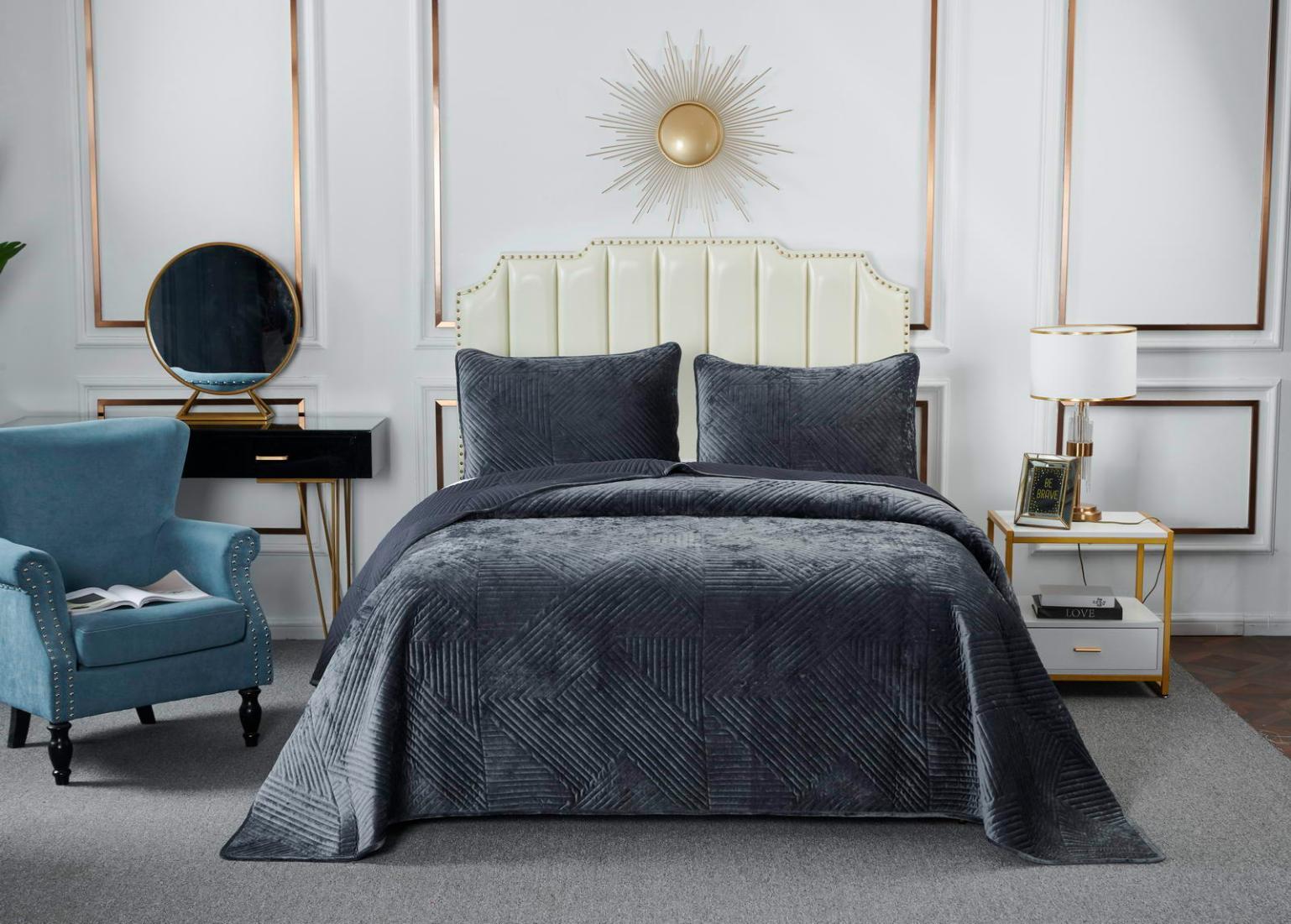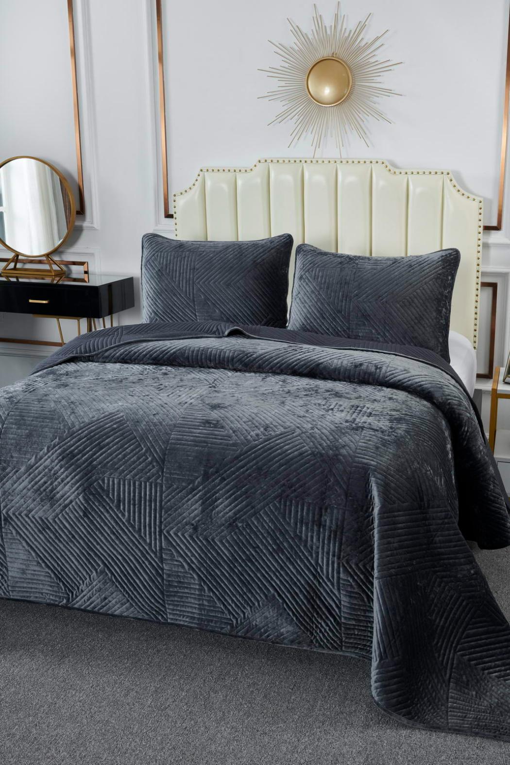 Покрывало "Sofi de Marko" Патрисия (антрацит 1) Велюр, 160х220
