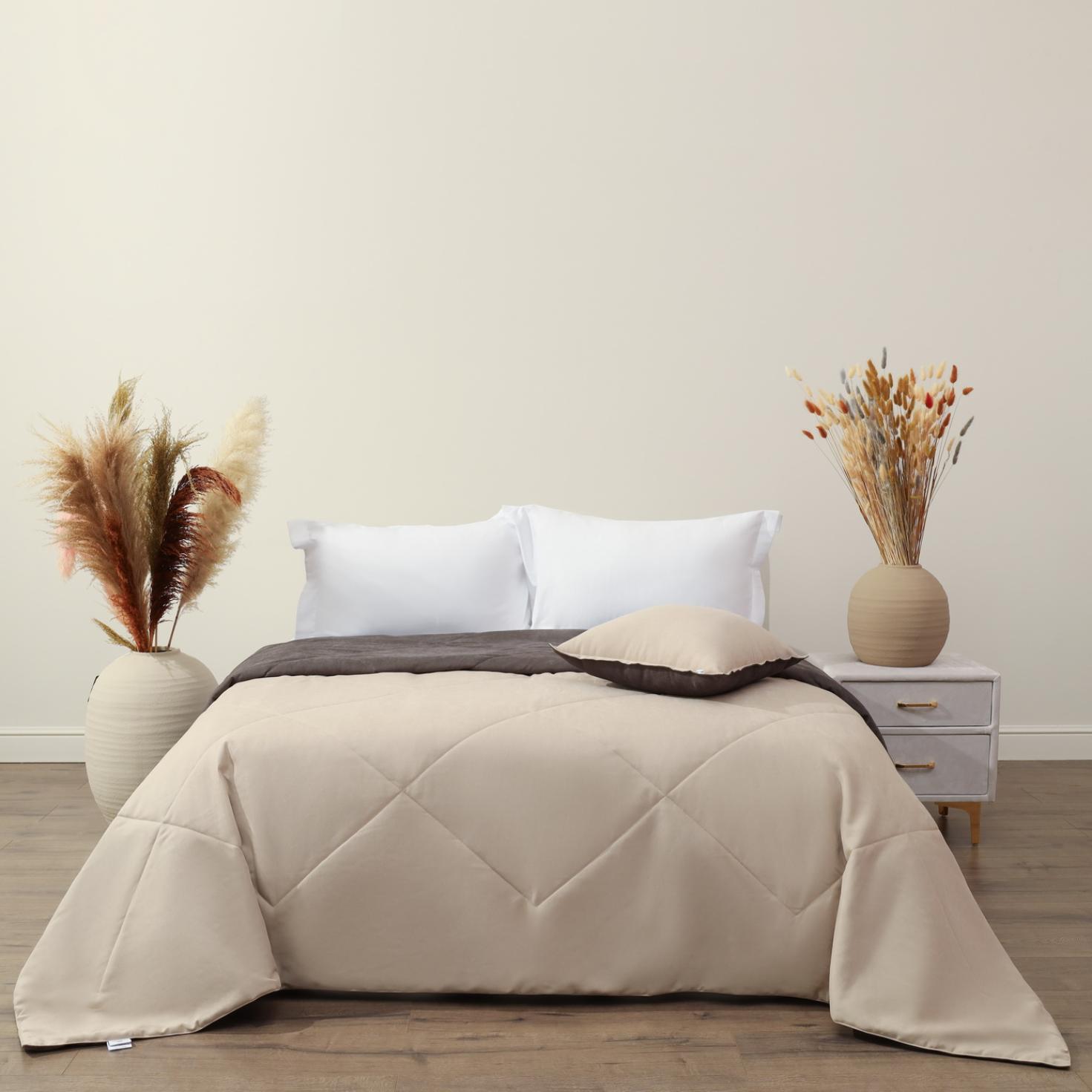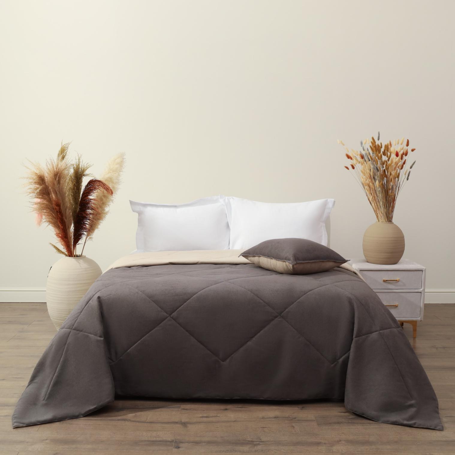При пошиве стёганого покрывала "Нолан" используются ткани из вискозы, нежной на ощупь и практичная в использовании. Ткань на основе вискозы не линяет при стирке, обладает отличной воздухопроницаемостью, гипоаллергенна. Верх покрывала выполнен из бархатистого канваса - плотной и износостойкой ткани с лёгким противоскользящим эффектом. Изнаночная сторона - матовый и нежный тик.