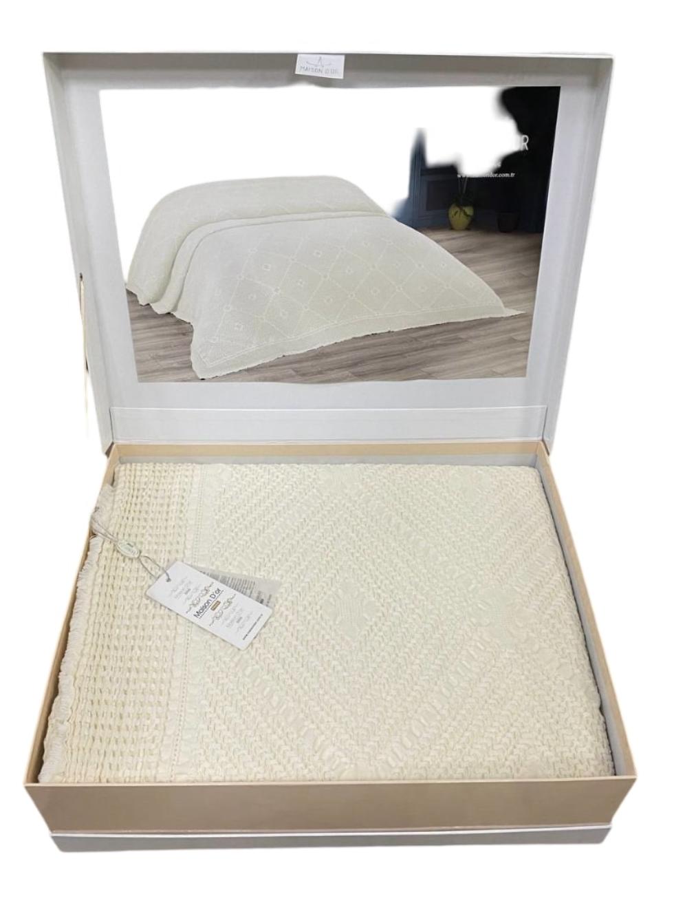 " ТМ "Maison D'or" применяется 100% хлопок, что обеспечивает изделию абсолютную экологичность, гипоаллергенность, высокий уровень воздухопроницаемости и гигроскопичности. Покрывало декорировано кистями.