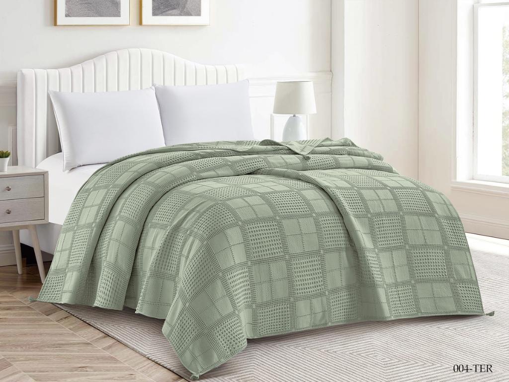 При производстве вафельного покрывала "TERRY" ТМ "CLEO" применяется 100% варёный хлопок, что обеспечивает изделию абсолютную экологичность, гипоаллергенность, высокий уровень воздухопроницаемости и гигроскопичности. Покрывало выполнено в однотонном формате и в летний период может использоваться в качестве лёгкого одеяла. Изделие декорировано кисточками по уголкам.