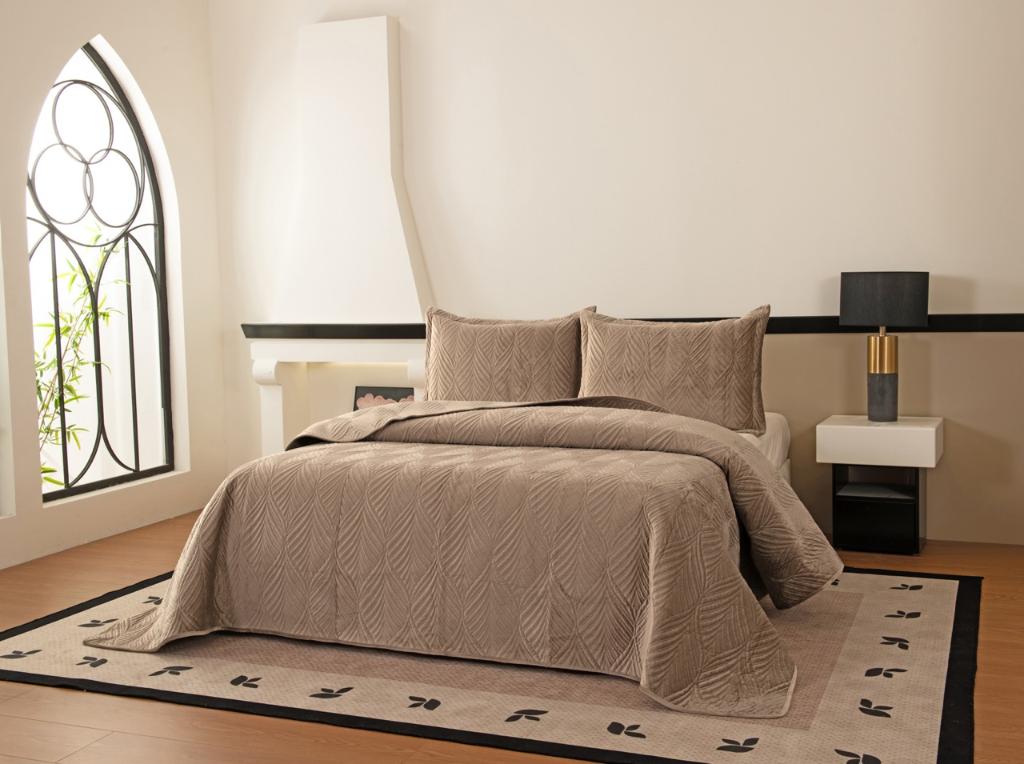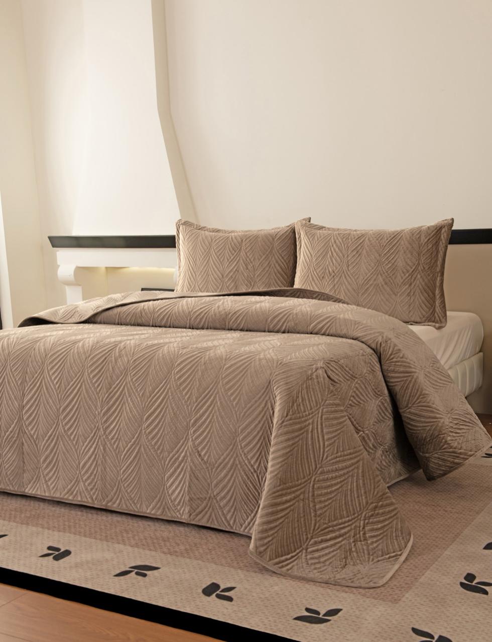 Комплект велюрового, антивандального покрывала "Таира" с наволочками выполнен из вискозы, нежной на ощупь и практичной в использовании: ткань не линяет при стирке, обладает отличной воздухопроницаемостью, гипоаллергенна.