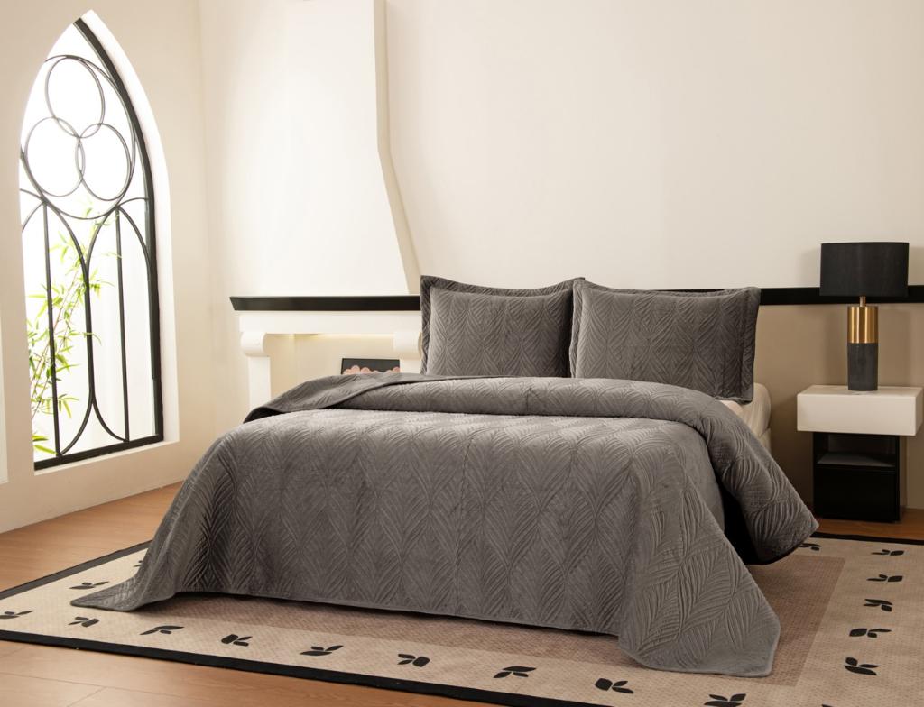 Комплект велюрового, антивандального покрывала "Таира" с наволочками выполнен из вискозы, нежной на ощупь и практичной в использовании: ткань не линяет при стирке, обладает отличной воздухопроницаемостью, гипоаллергенна.