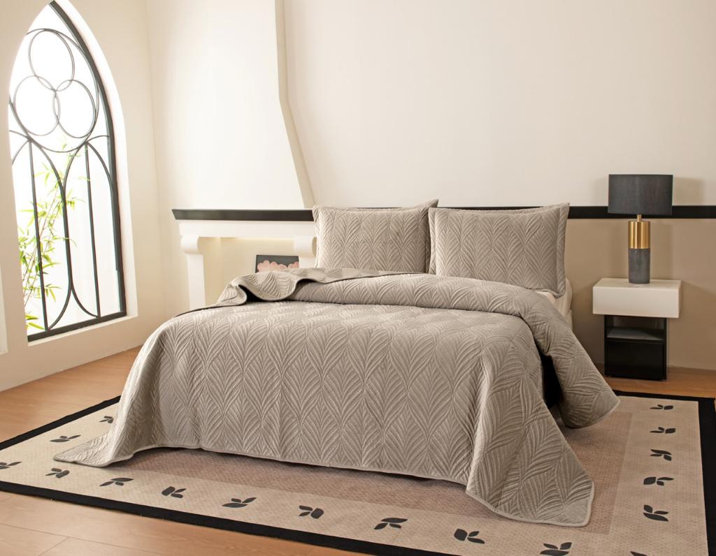 Комплект велюрового, антивандального покрывала "Таира" с наволочками выполнен из вискозы, нежной на ощупь и практичной в использовании: ткань не линяет при стирке, обладает отличной воздухопроницаемостью, гипоаллергенна.