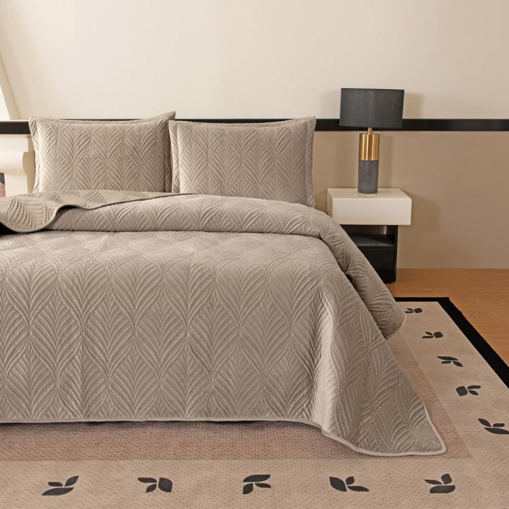 Покрывало "Sofi de Marko" Таира (светло-бежевый) Велюр, 240х260