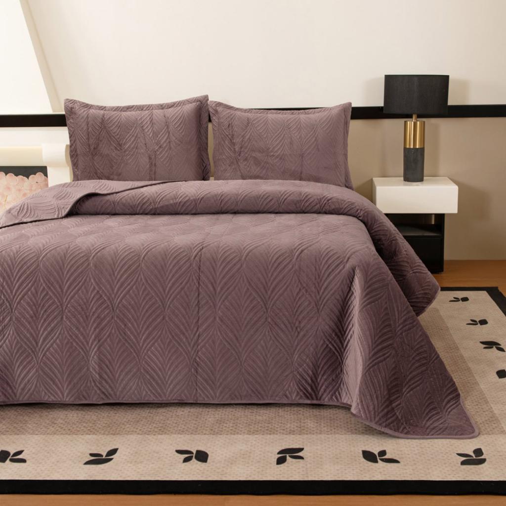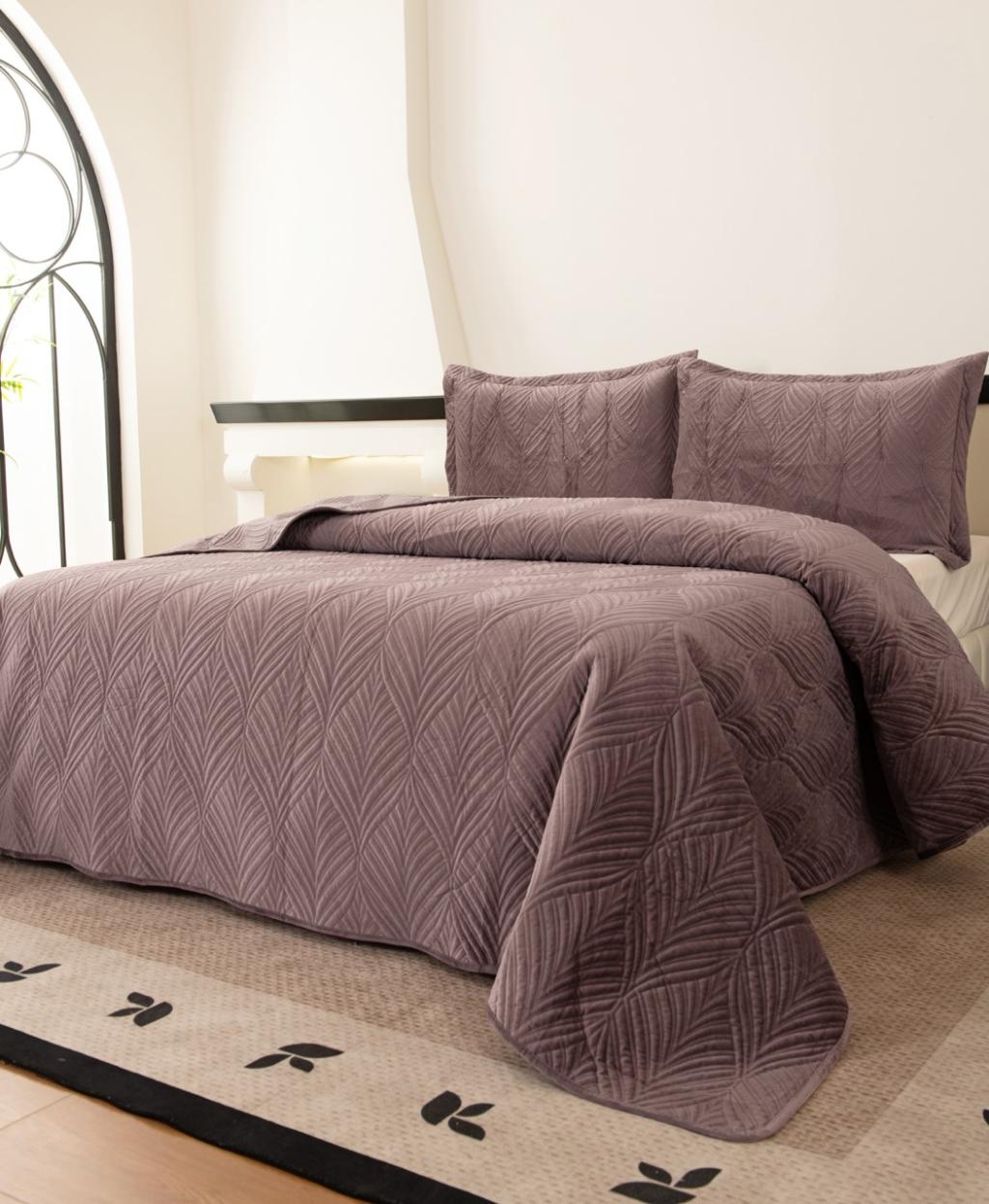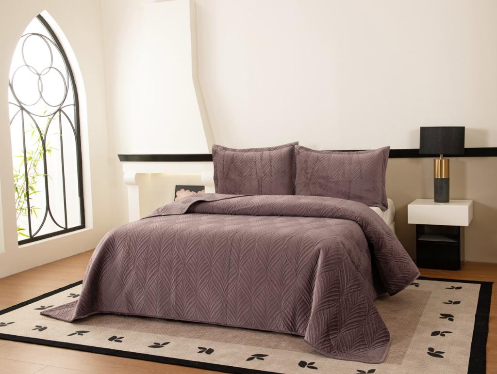Комплект велюрового, антивандального покрывала "Таира" с наволочками выполнен из вискозы, нежной на ощупь и практичной в использовании: ткань не линяет при стирке, обладает отличной воздухопроницаемостью, гипоаллергенна.