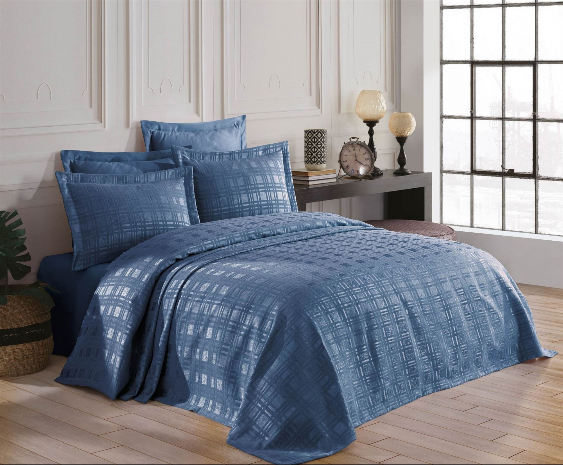 Гобеленовое покрывало "DO&CO" 240х260 (50x70-2 шт.) EKOSE, светло-синий