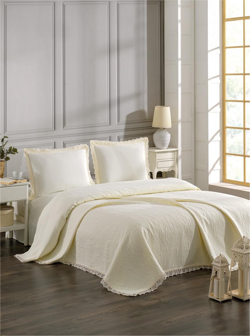 Покрывало "DO&CO" Жаккард с гипюром 220x240 CALISTA, кремовый