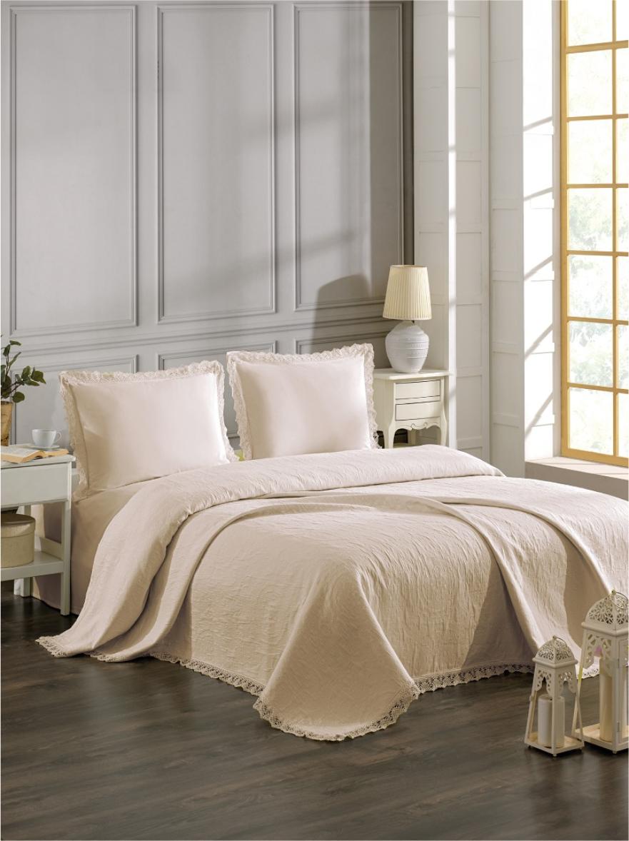 Покрывало "DO&CO" Жаккард с гипюром 220x240 CALISTA, бежевый