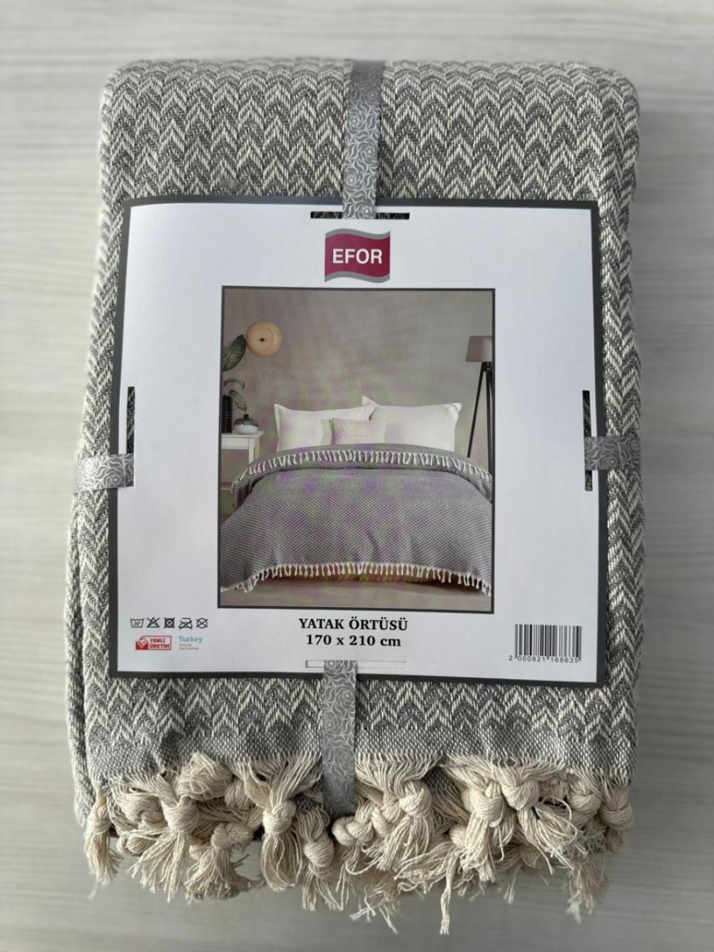 При изготовлении лёгкого покрывала "V DESEN" торговой марки "EFOR" используется хлопок с добавлением полиэстера, что существенно повышается прочность и несминаемость изделия. Покрывало хорошо смотрится как на диване, так и на кровати.