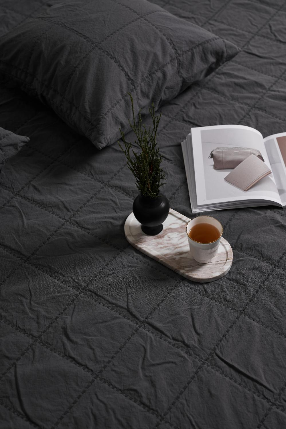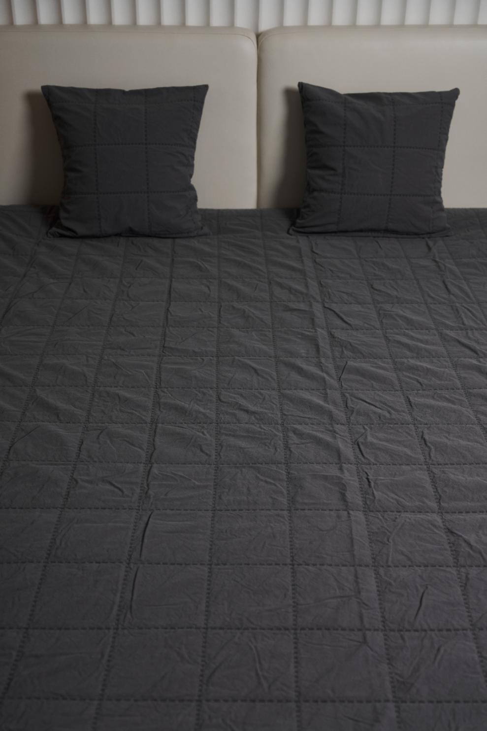 Для производства покрывал серии "KUBU" с "жатой" структурой ткани используется 100% хлопок, что обеспечивает изделиям абсолютную экологичность и гипоаллергенность. Дизайн - стёганые квадраты 9х9 см с 3D-эффектом. Обратная сторона выполнена из мягкого велюрового вельвета. Дополнительная обработка - stone washed с энзимами.