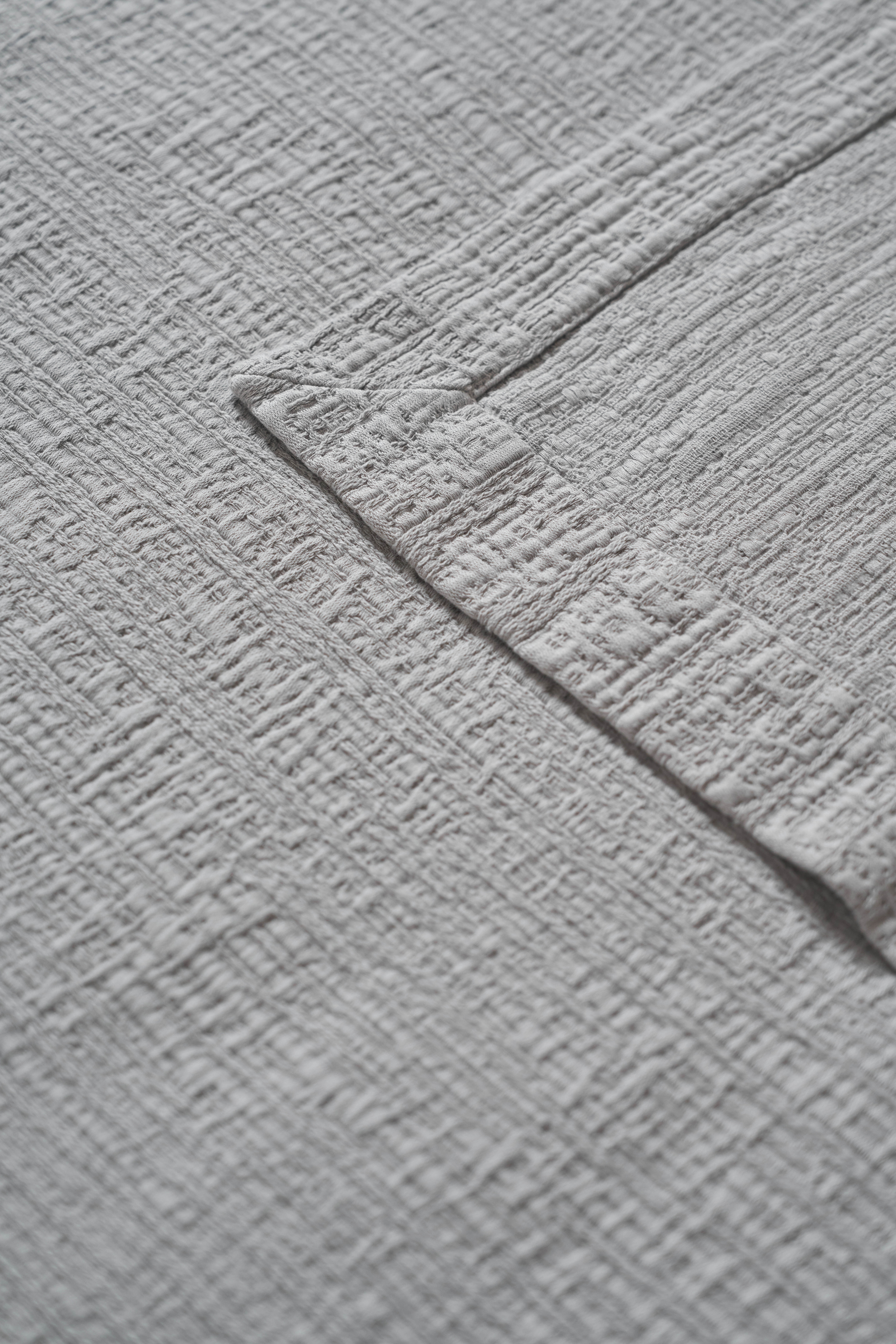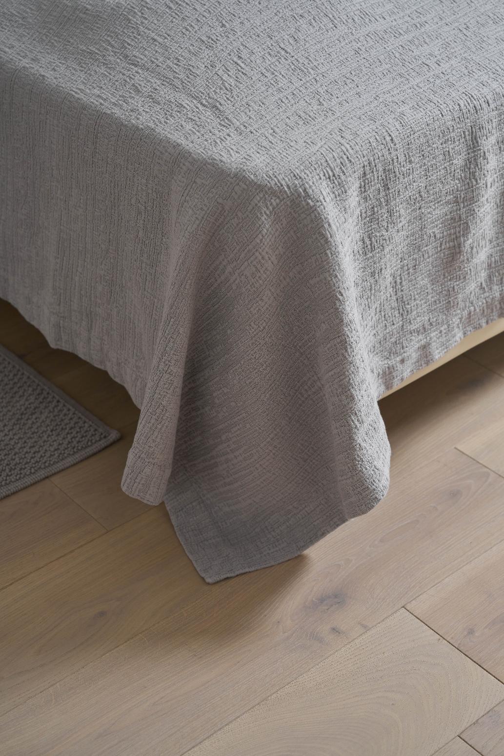 Для производства покрывал серии "RAINY DAY" используется 100% хлопок, что обеспечивает изделиям абсолютную экологичность и гипоаллергенность. Дизайн - нежно-серый цвет с лавандовым оттенком, объёмная фактура с 3D-эффектом. Обратная сторона мягкая, хлопковая, противоскользящая. Дополнительная обработка - stone washed.