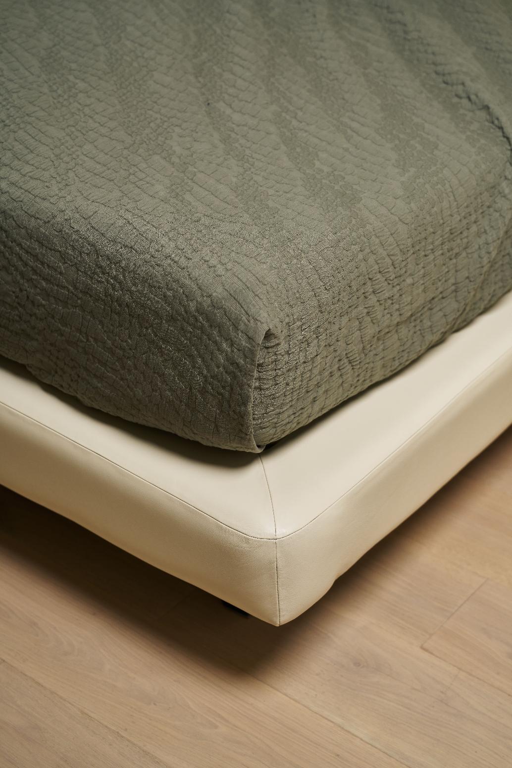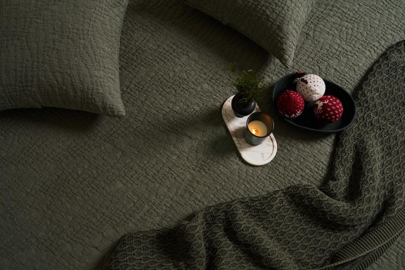 Для производства покрывал серии "TREE BARK" используется 100% хлопок, что обеспечивает изделиям абсолютную экологичность и гипоаллергенность. Дизайн - цвет насыщенный зелёный хаки, рельеф напоминает кору дерева, объёмная фактура с 3D-эффектом. Обратная сторона мягкая, хлопковая, противоскользящая. Дополнительная обработка - stone washed.
