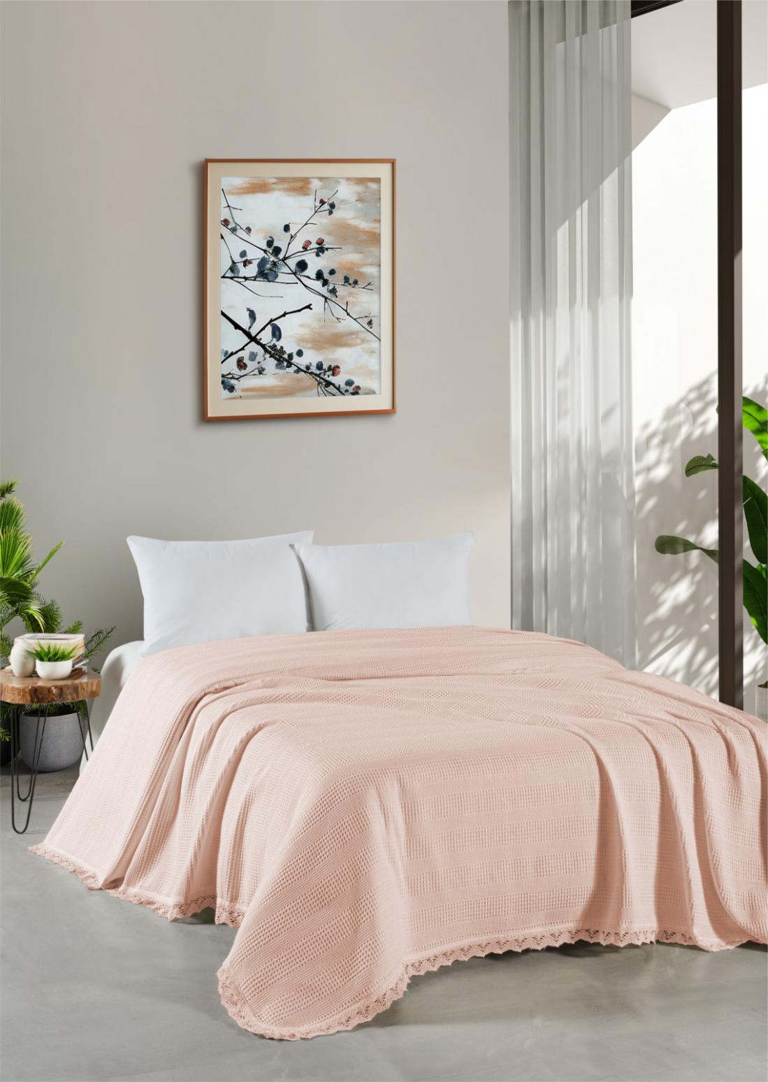 Покрывало вафельное с гипюром "DO&CO" 160x220 PETEK, персиковый