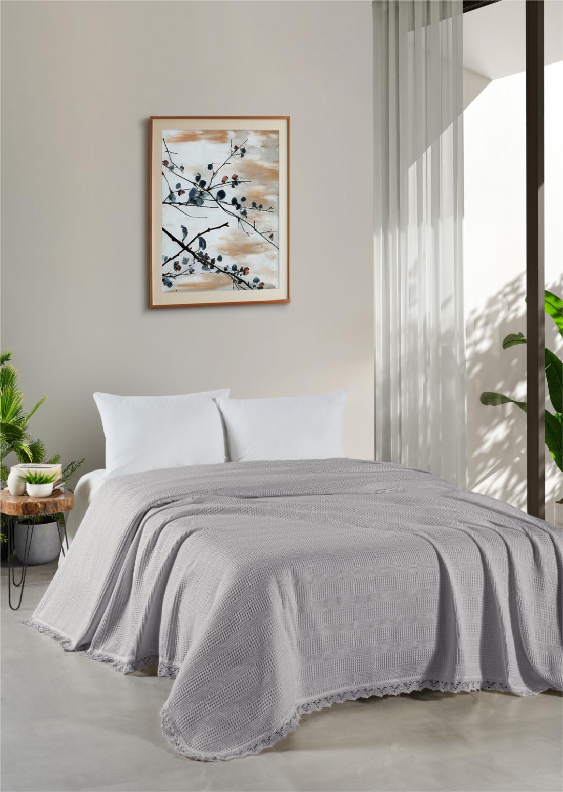 Покрывало вафельное с гипюром "DO&CO" 160x220 PETEK, серый