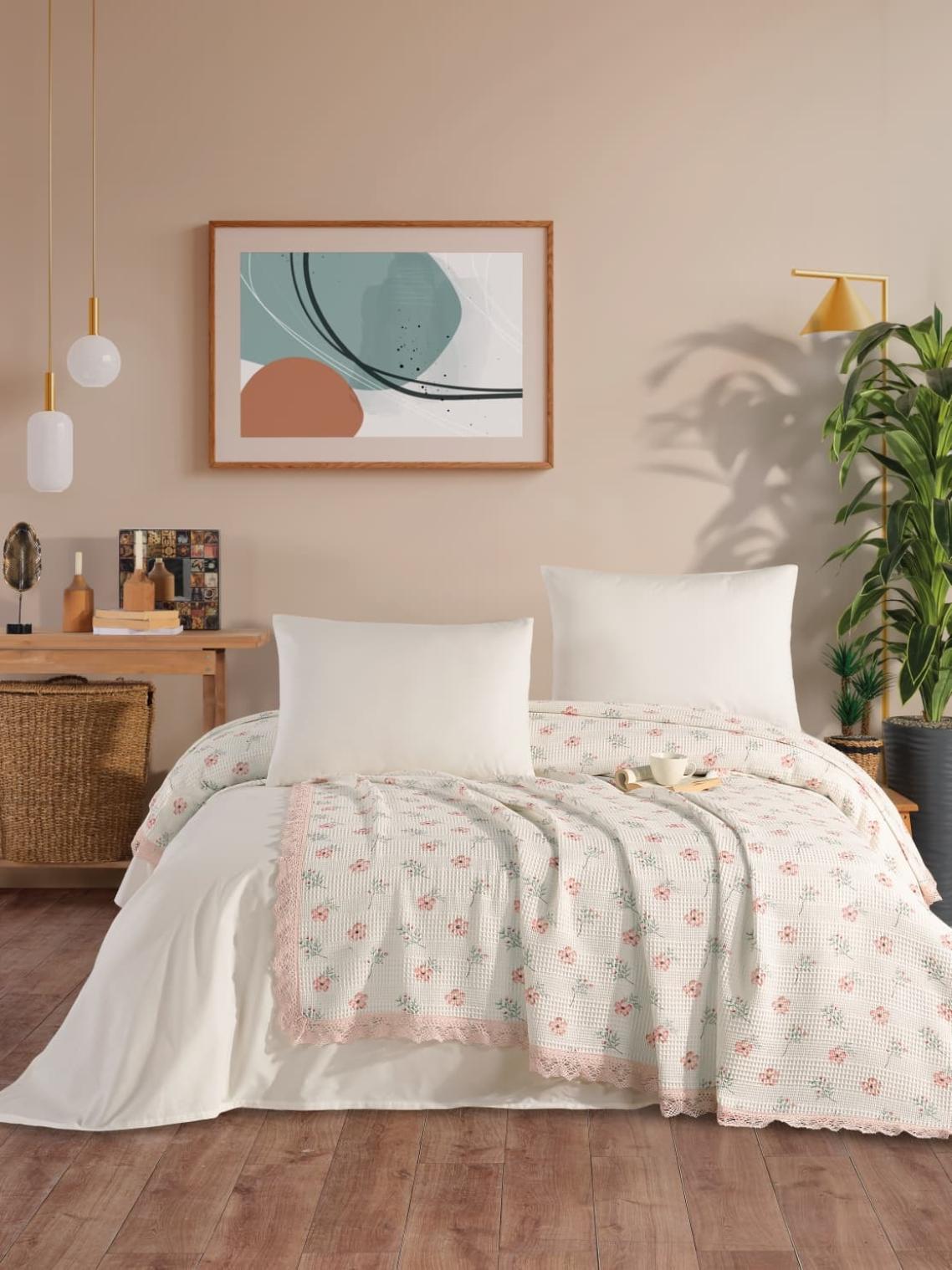Покрывало вафельное с гипюром "DO&CO" 220x240 ТУЛ/TUL, персиковый