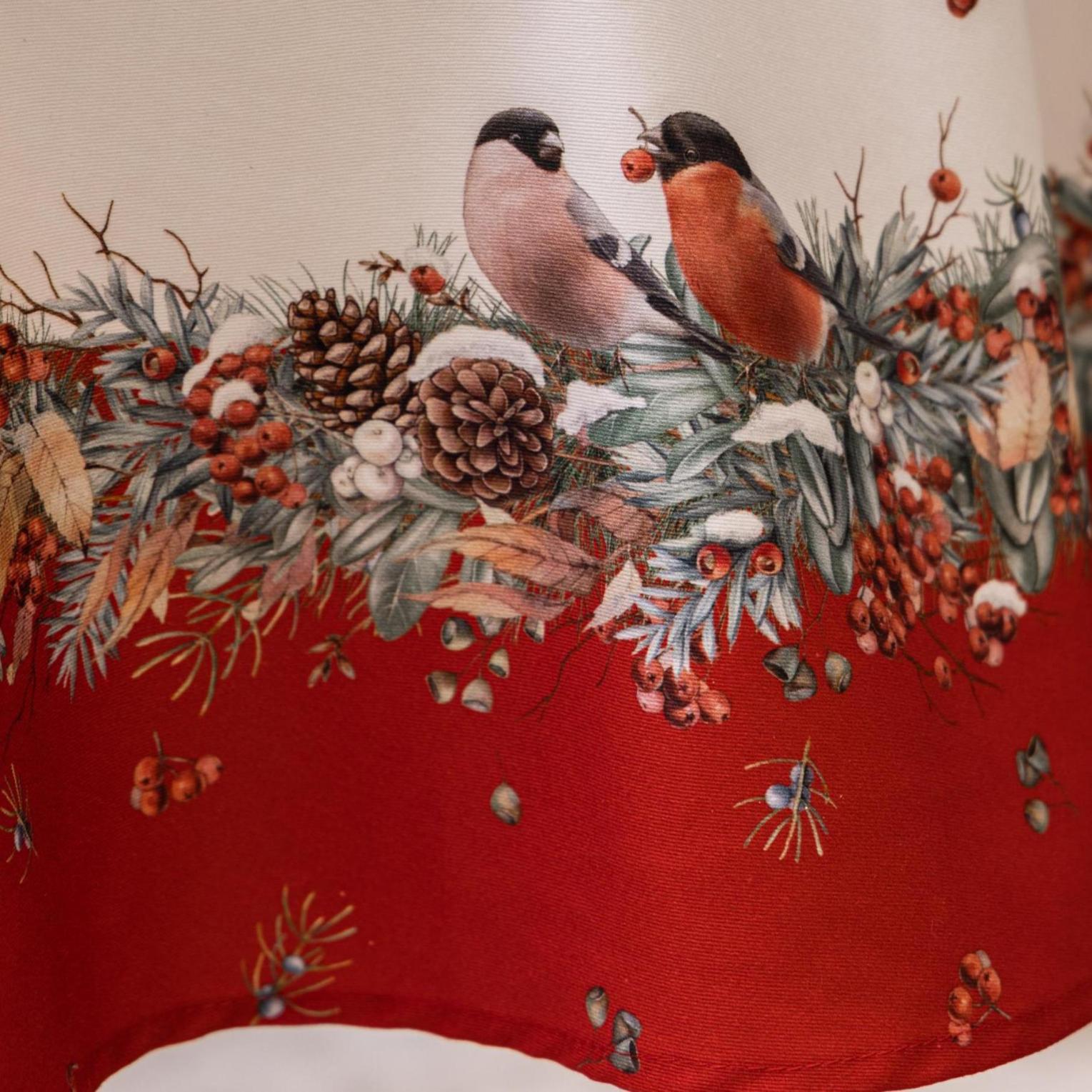 Скатерть серии "Морозко. Снегири" выполнена из 100% хлопка твила.