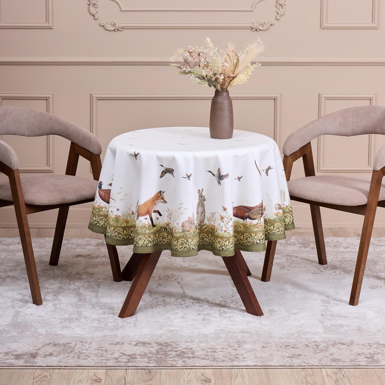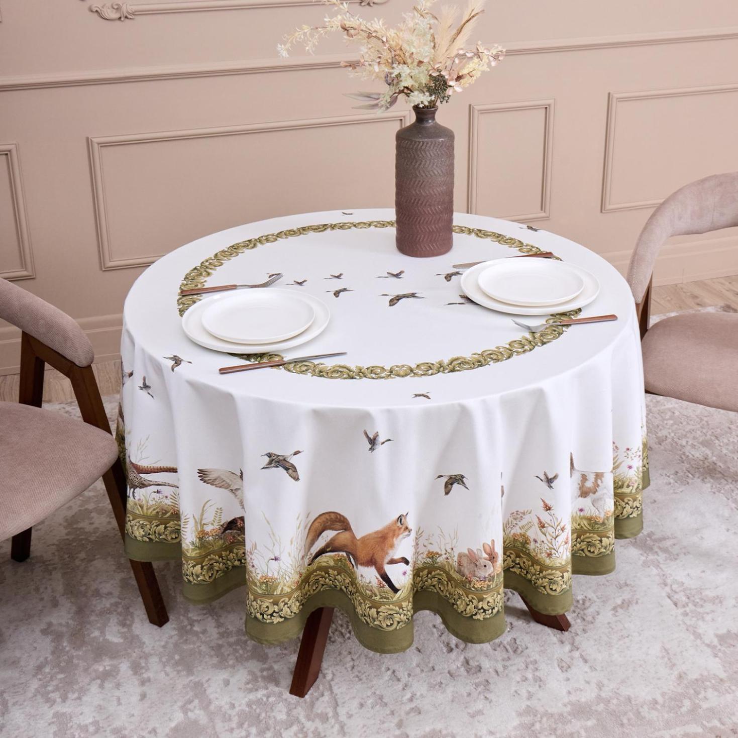Скатерть круглая с пропиткой SANTALINO "ОХОТА" 150 см, белый