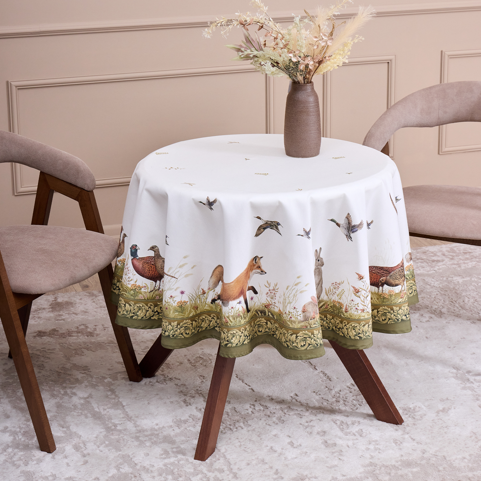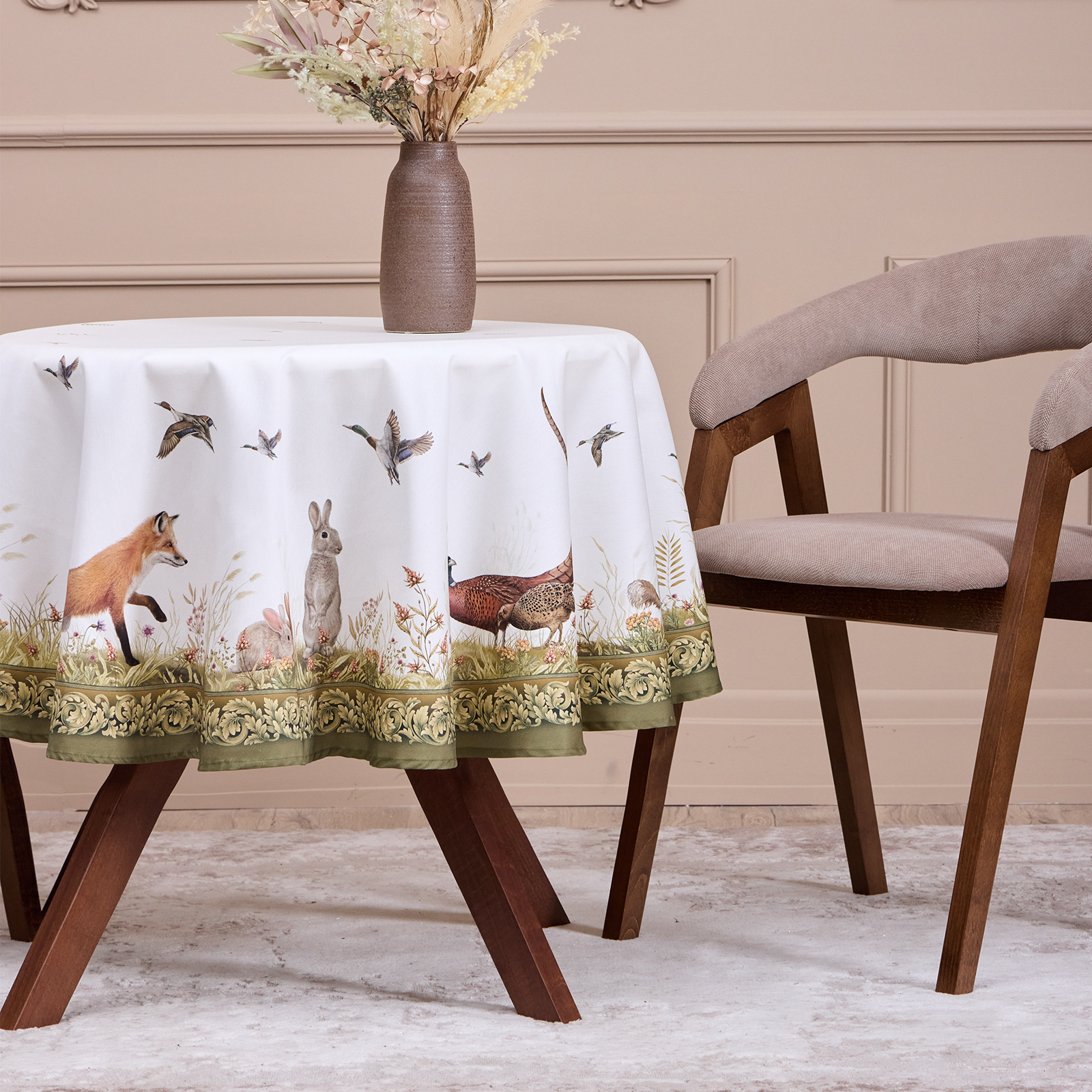 Скатерть серии "Охота" выполнена из 100% хлопка твила.