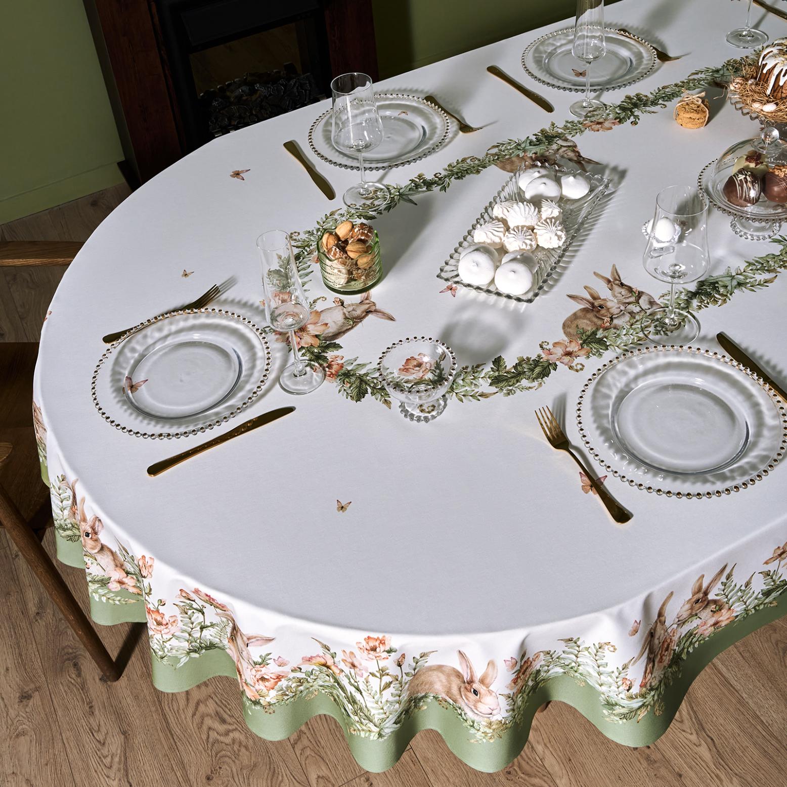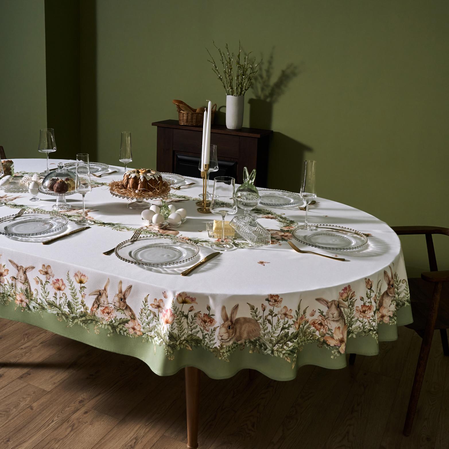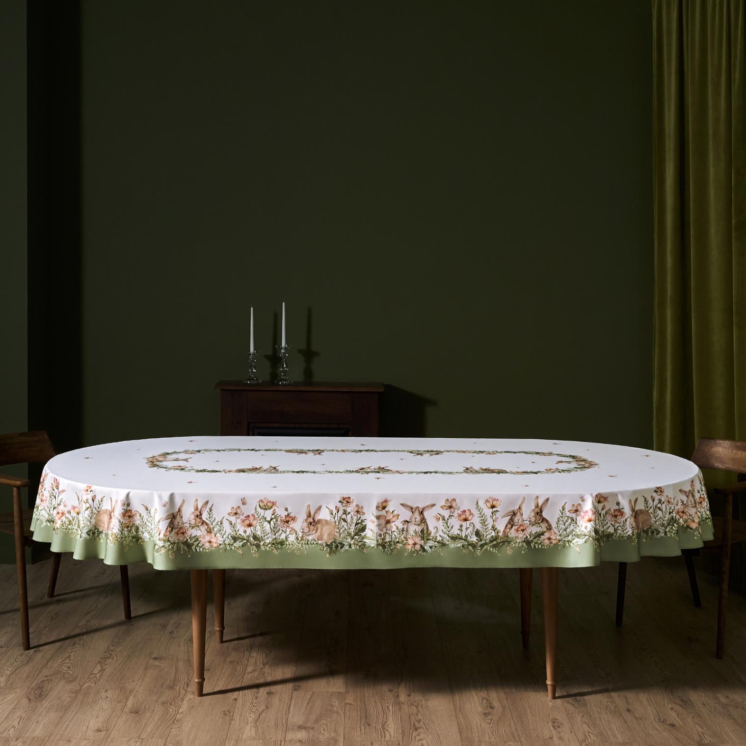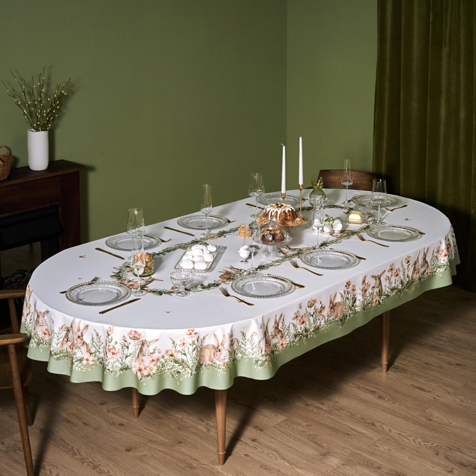 Скатерть овальная с пропиткой LEFARD "SENSE" 180х300 см, зелёный