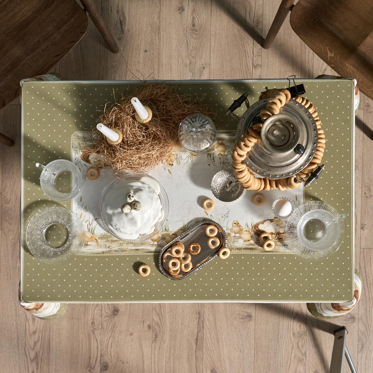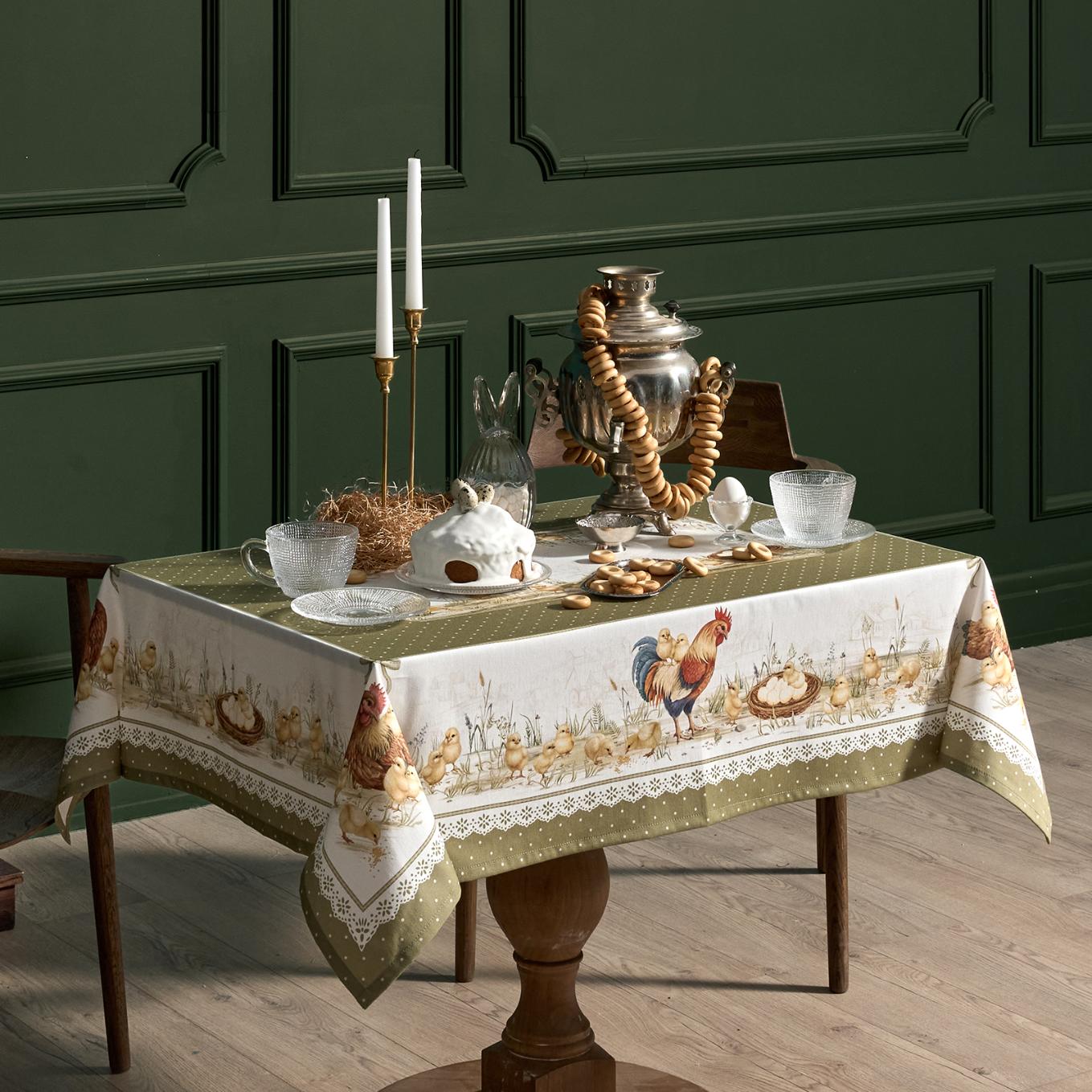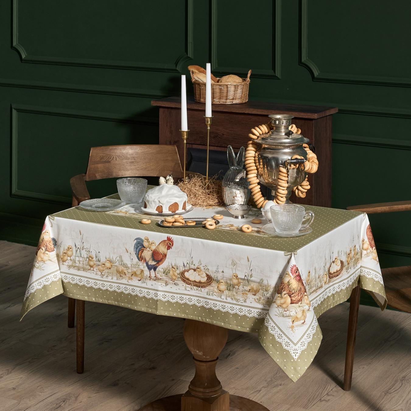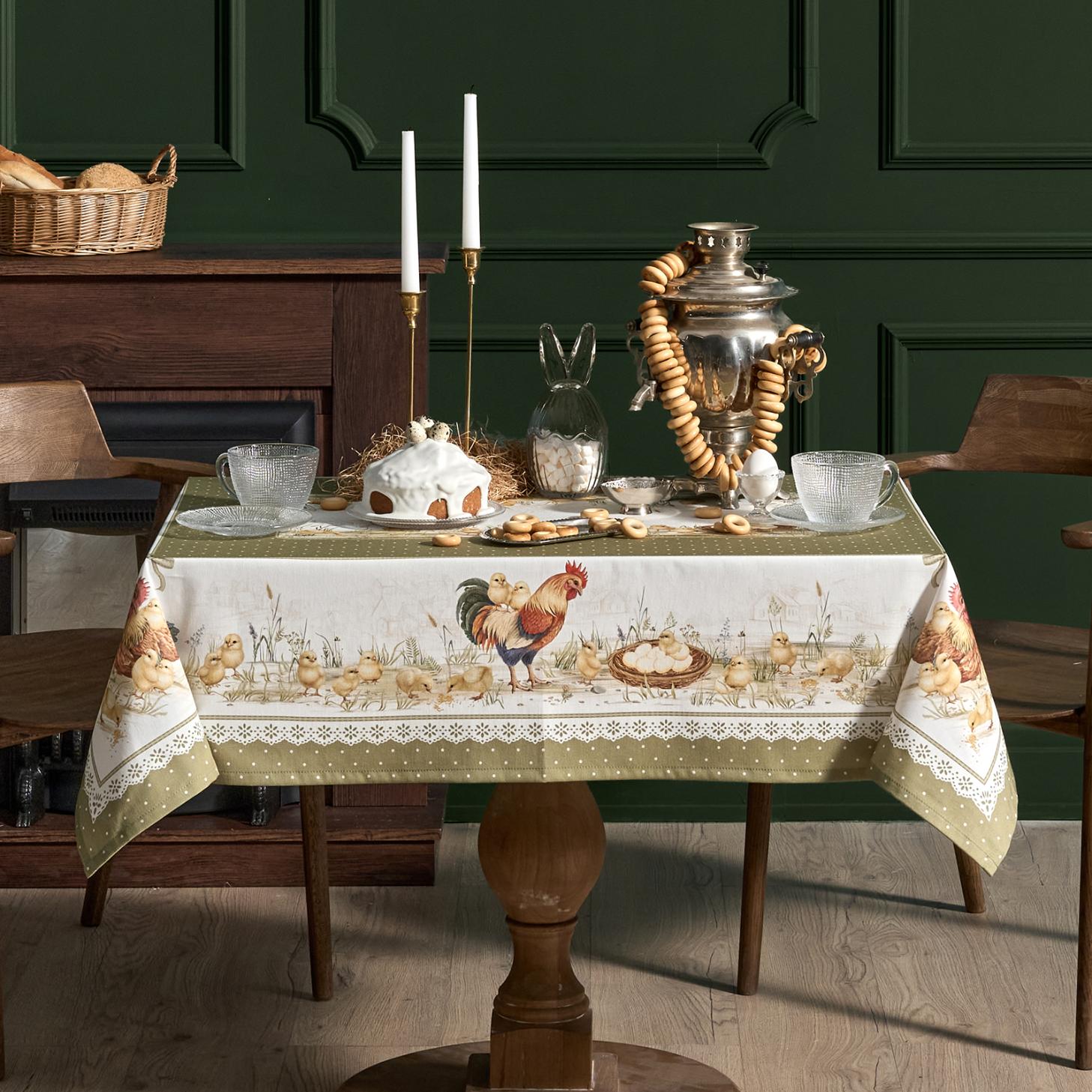 Скатерть серии "Золотая курочка" выполнена из 100% хлопка твила.