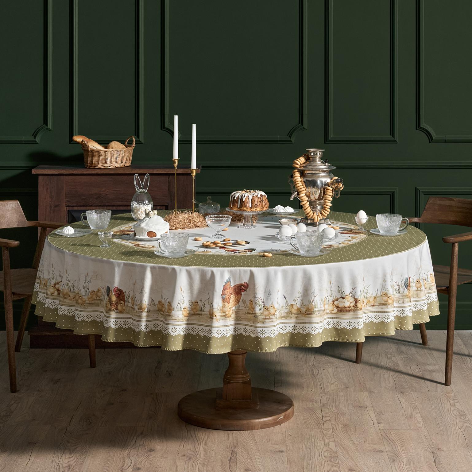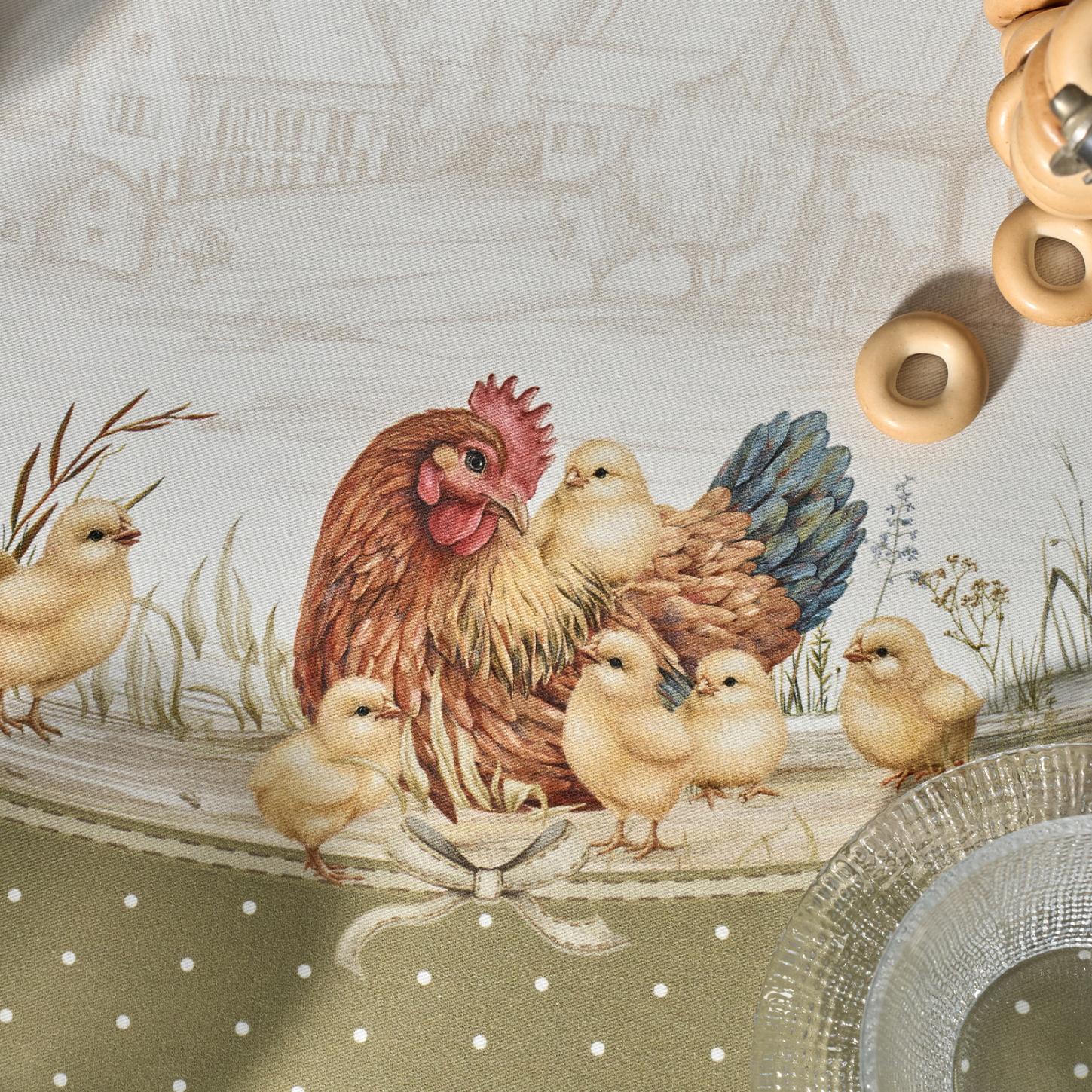Скатерть серии "Золотая курочка" выполнена из 100% хлопка твила.