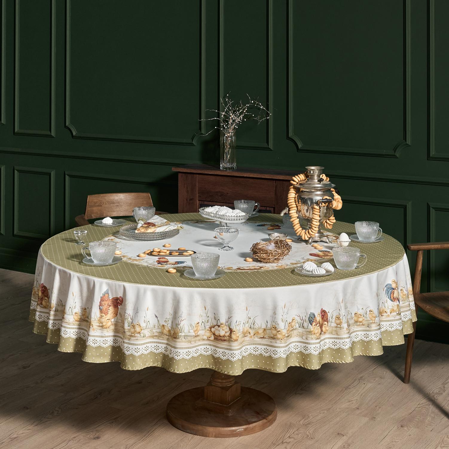 Скатерть круглая с пропиткой "ЗОЛОТАЯ КУРОЧКА", 220 см