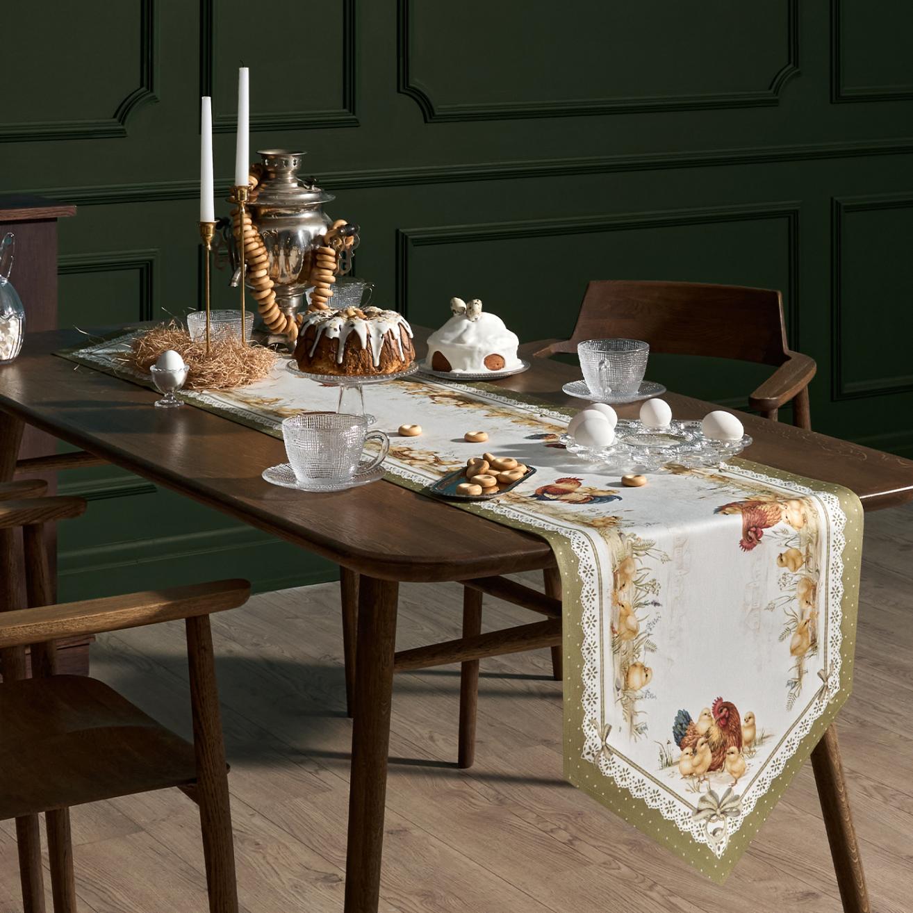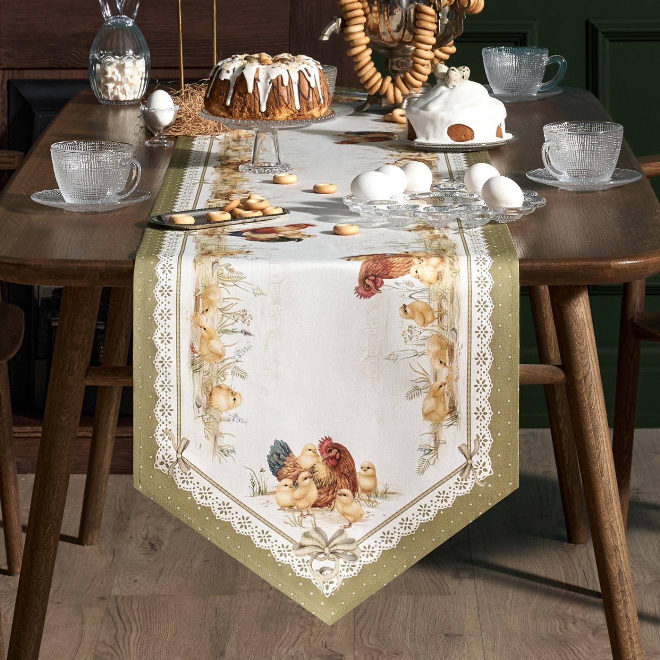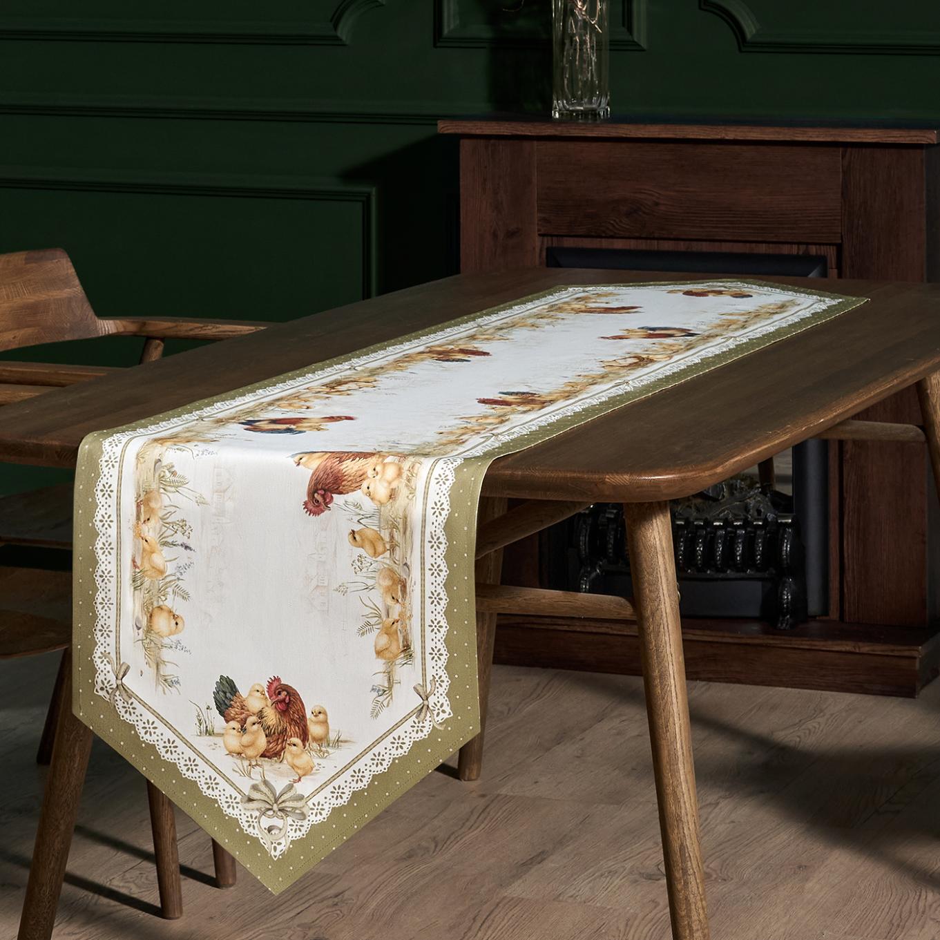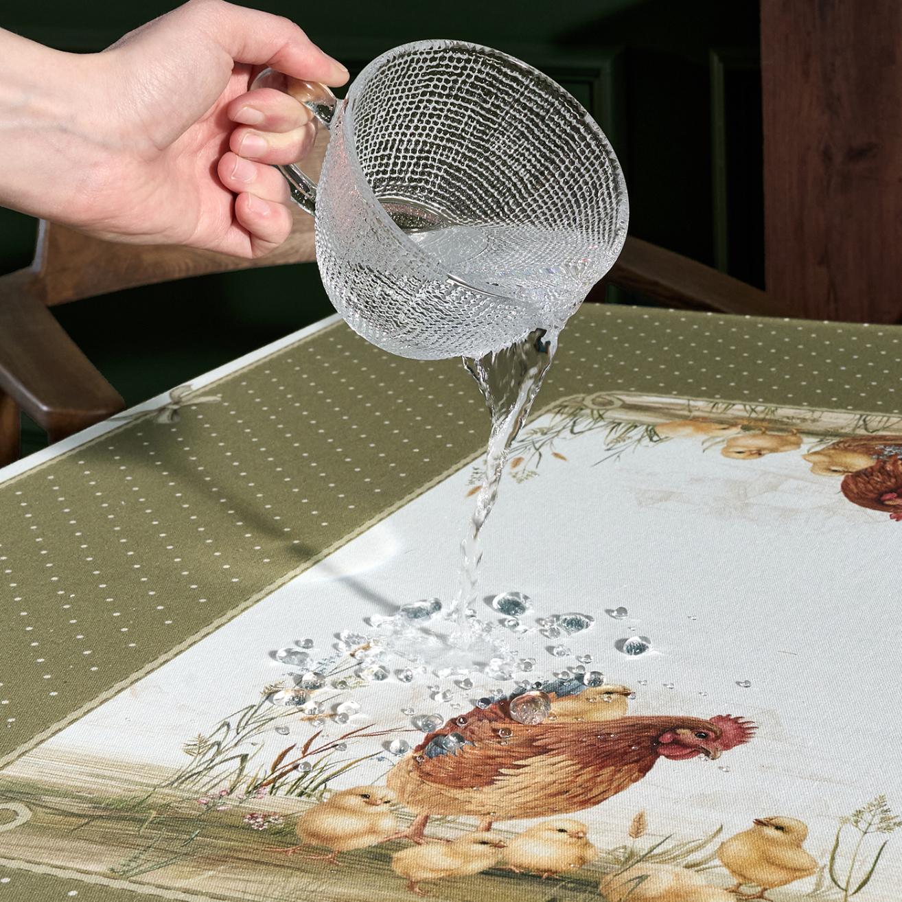 Скатерть серии "Золотая курочка" выполнена из 100% хлопка твила.